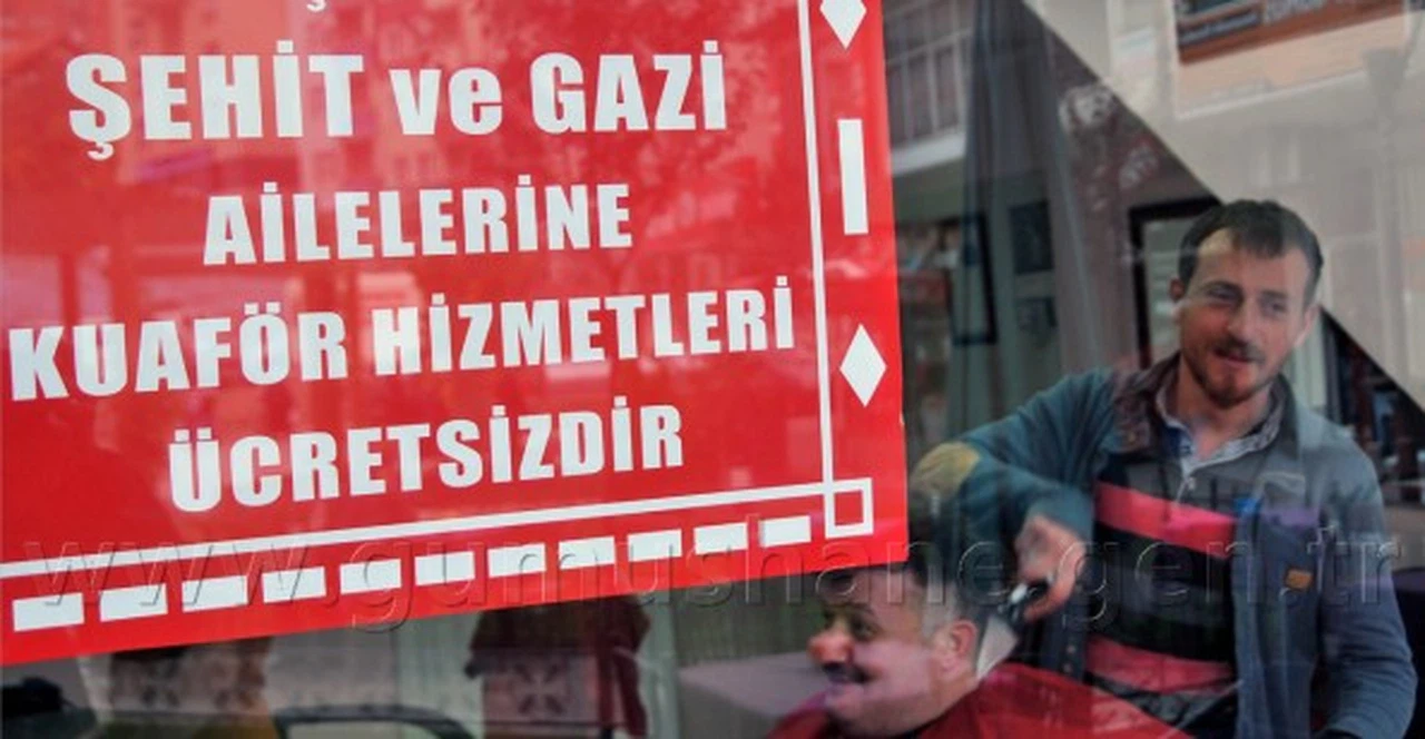 Son dönemde yaşanan olaylardan etkilenerek Zafer Meydanında bulunan berber dükkanının camına “Bu işyerinde şehit ve gazi ailelerine kuaför hizmetleri ücretsizdir” tabelası asan Nas, iki haftadan beri bu hizmeti sürdürdüğünü söyledi.