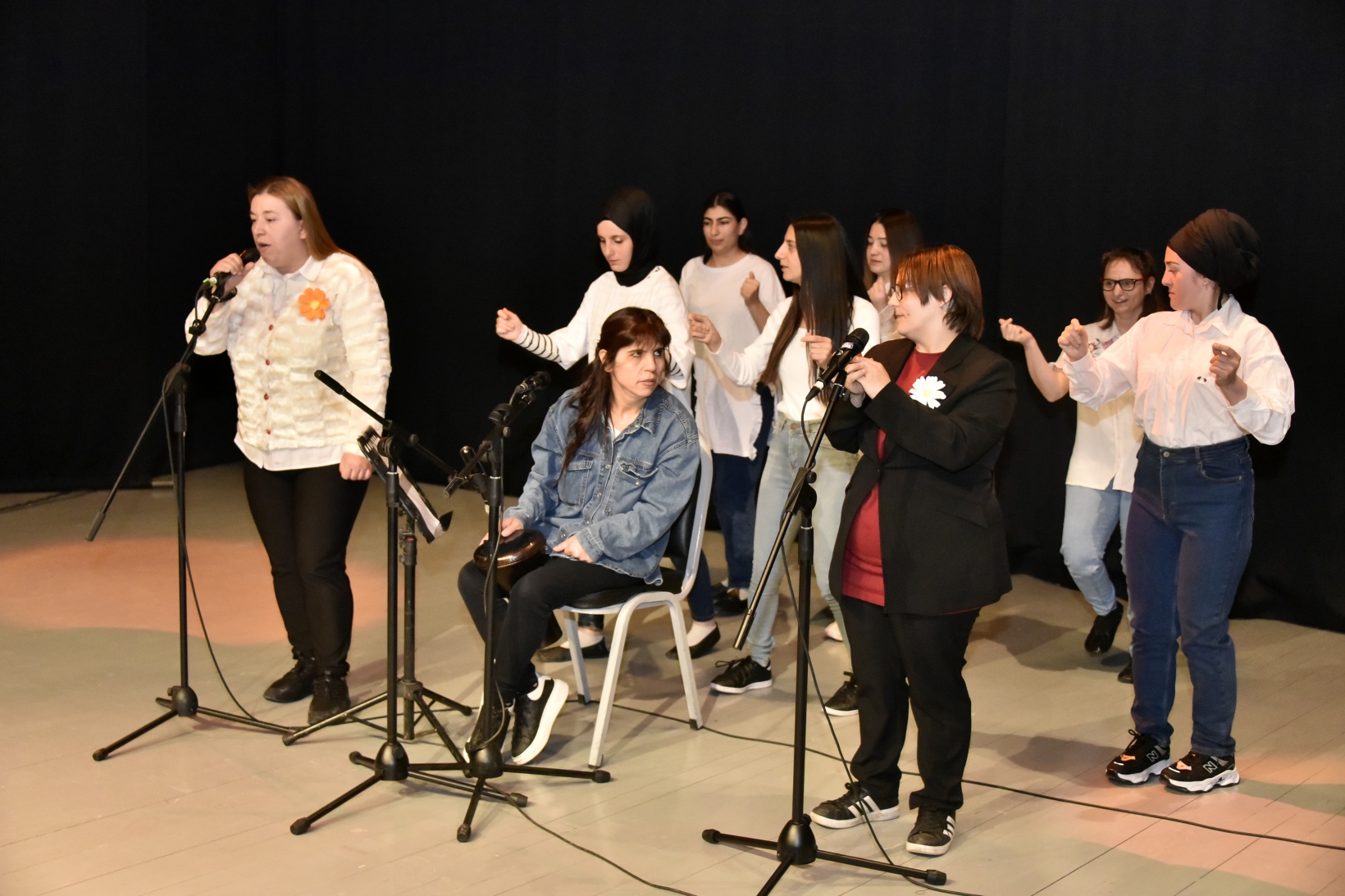 Işıklı gösterinin yanında sıra gecesi de yapan özel gereksinimli bireylerin seslendirdiği türkülere salonu dolduran herkes alkışlarıyla eşlik etti.