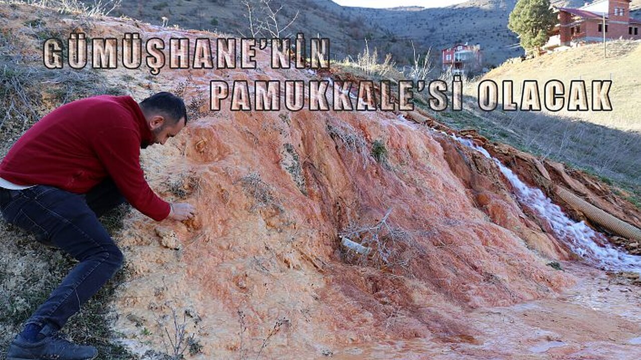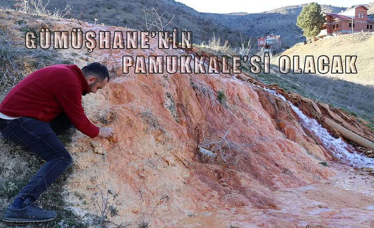 İkisu-Şiran karayolunun kenarında yer alan alanda bir yıldır akan sular tortu tabakası oluştururken alanda şimdiden dünyaca ünlü Pamukkale travertenlerine benzer oluşumlar başladı.