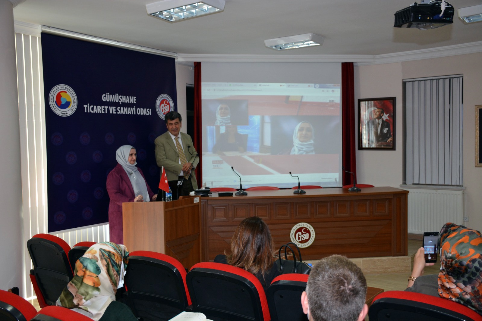 Toplantıya katılan GTSO Başkanı İsmail Akçay ise “Ekibiyle Gümüşhane’de bir ilki başaran Ayşegül hanıma teşekkür ediyorum. Türkiye’de kadın iş gücünün iş hayatına katılım oranı Avrupa standartlarının çok altında. Hedefimiz kadın iş gücünün daha yüksek oranlarda iş hayatına katılmasıdır. Türkiye olarak bizim dünya milletleri arasında hak ettiğimiz yere gelmemiz lazım. Vicdanız ve irfanı hür nesiller yetiştirmek zorundayız. Bunun temeli de kadınlardır. Bir erkeği eğittiğimiz zaman bir kişiyi, bir kadını eğittiğimiz zaman aileyi, dolayısıyla bir toplumu eğitmiş oluruz. TOBB ve Gümüşhane TSO olarak kadınlarımıza çok değer veriyoruz” dedi.