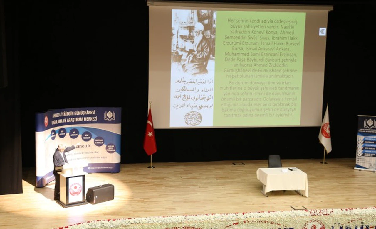Gümüşhane Üniversitesi Ahmed Ziyaüddin Gümüşhanevi Uygulama ve Araştırma Merkeziyle İlahiyat Fakültesinin ortaklaşa düzenlediği “Gümüşhane'den dünyaya uzanan bir ses: Ahmed Ziyaüddin Gümüşhanevi” programı saygı duruşunda bulunması ve İstiklal Marşı'nın okunmasıyla başladı.