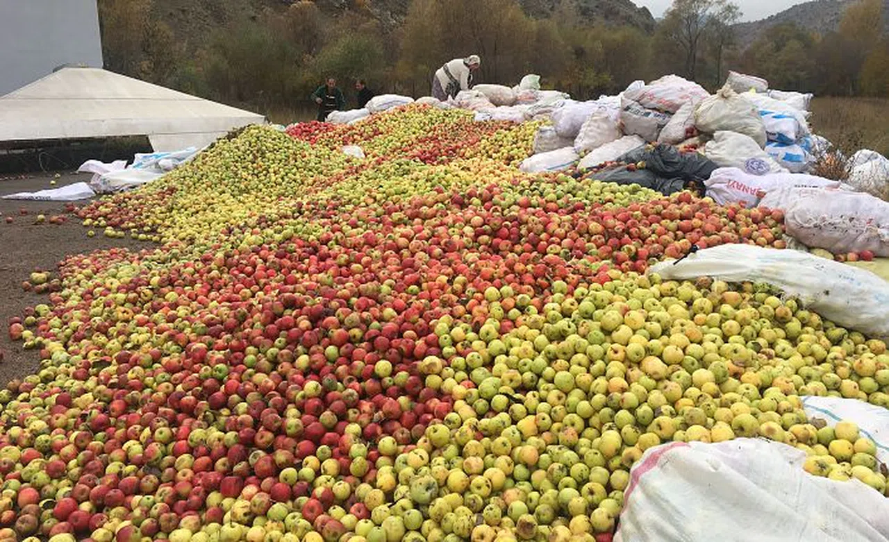 Sanayi tipi olarak da bilinen, sirke yapımında, meyve suyu fabrikalarında hammadde olarak kullanılabilen, konsantre olarak da yurtdışına ihraç edilen döküntü elma için bölgenin köklü meyve suyu üretimi fabrikası olan GÜMÜŞSU tarafından başlatılan kampanya ile köylerden tonlarca elma fabrikanın bahçesine yığıldı.