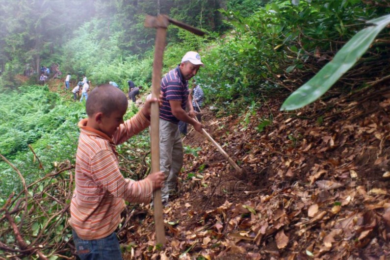 Köy halkı yaylalarında yıllardır devam eden su sorununu devlet-vatandaş-özel sektör iş birliğiyle çözmek için Ramazan ayı olmasına rağmen çocuk kadın erkek demeden su kanalı kazıyor.
