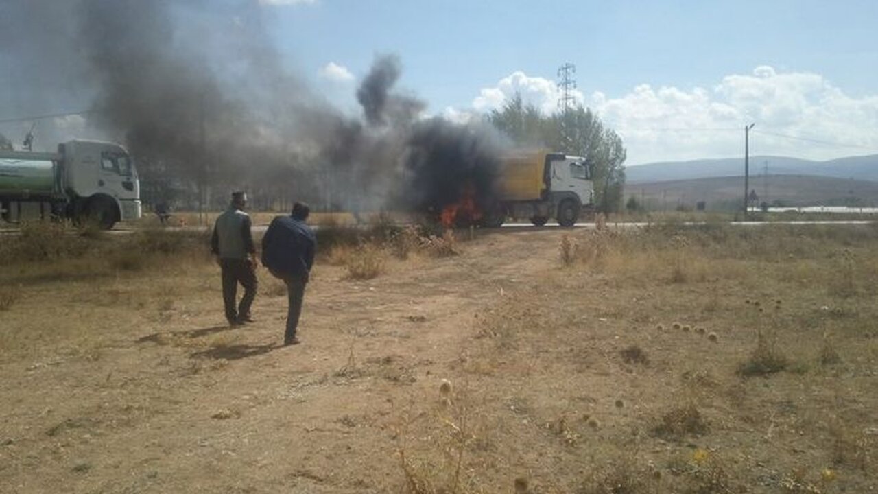 Aracın yakıt deposuna ve çevredeki kuru otlara sıçramadan söndürülen yangın sonunda kamyonda küçük çaplı hasar meydana gelirken, oluşan duman ve yangın kısa süreli paniğe neden oldu.