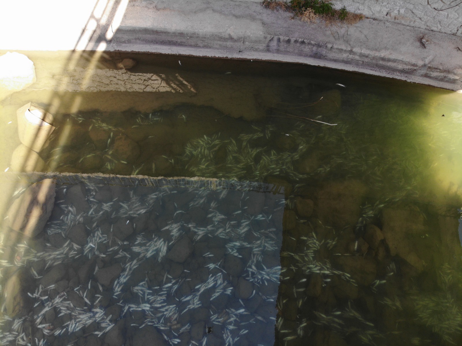 Otogar ile Turizm Müdürlüğü önüne kadar olan alanda binlerce balığını bir gün içerisinde öldüğünü söyleyen çevre sakinleri olayın sebebinin araştırılmasını istiyor.