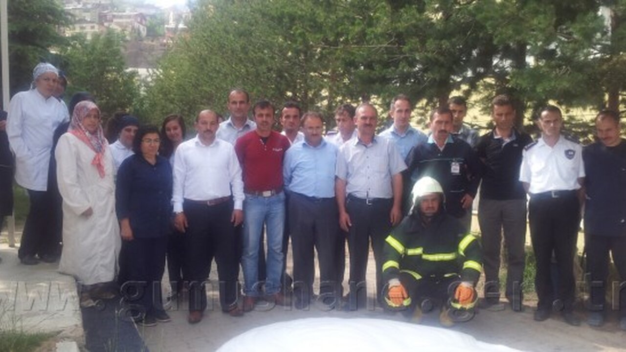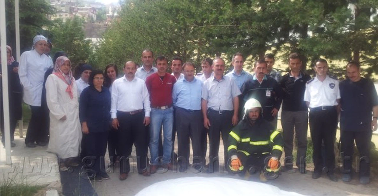 Gümüşhane Belediyesi İtfaiye Müdürü Harun Şeker tarafından verilen eğitimlerde ilk olarak hastane personeline yangınlara müdahale ve korunma şekilleri hakkında teorik eğitim verildi.
