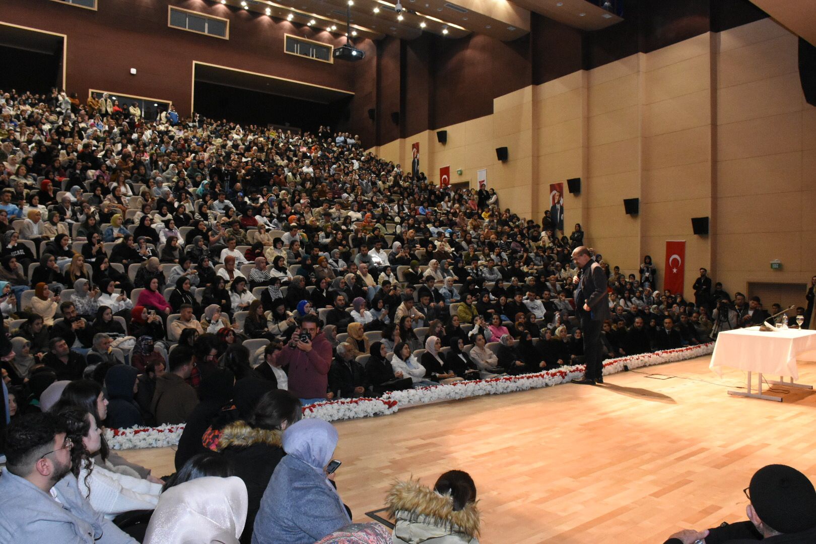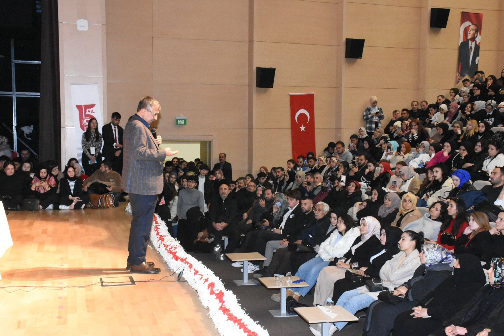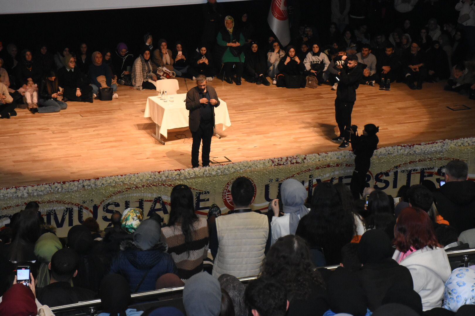 İlmiyle, muhabbetiyle, sözüyle gönülleri mest eden Hayati İnanç’ı Gümüşhane’ye bizzat davet eden Belediye Başkanı Ercan Çimen’in acil olarak il dışına çıkması nedeniyle yerine vekaleten Belediye Başkan Vekili Duygu Sena Kurt’un katıldığı programda neredeyse tamamı gençlerden oluşan kitleye 1,5 saat boyunca hitap eden İnanç, geçmişin ibret dolu yaşanmışlıklarından örnekler aktararak toplumun güncel sorunları üzerine değerlendirmeler yaptı.