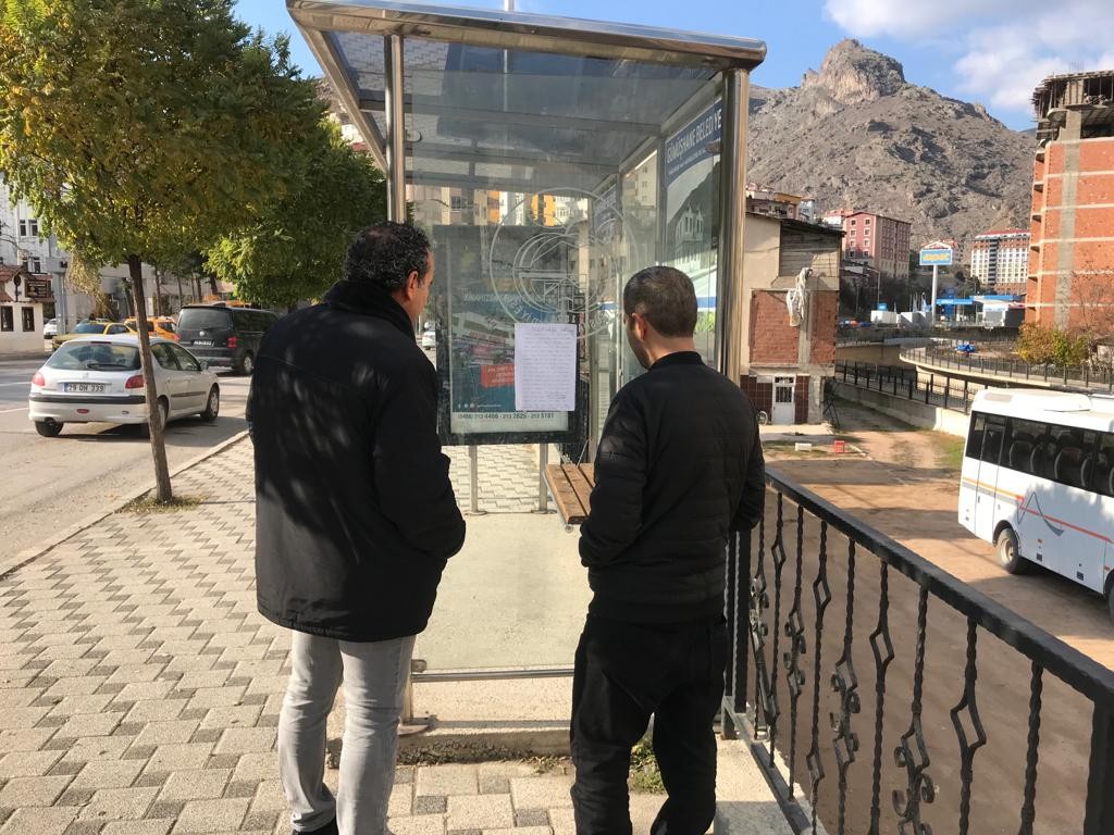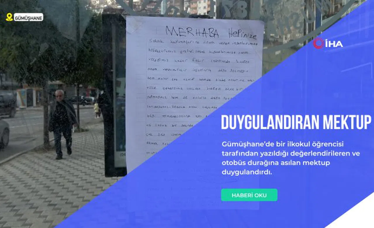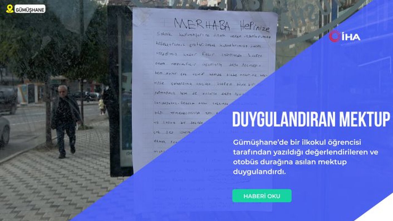 Hasanbey mahallesinde bulunan Dumlupınar İlkokulunun karşısında yer alan otobüs durağına ilkokul öğrencisi tarafından yazıldığı ve asıldığı değerlendirilen yazı okuyanların duygu dolu anlar yaşamasına neden oldu.