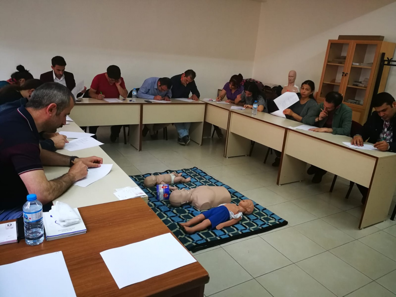 Toplam 16 saatlik 2 gün süren kurs bitiminden sonra İlkyardım Yönetmeliği gereği ölçme değerlendirme işlemi yazılı ve uygulamalı sınavla İl Sağlık Müdürlüğü tarafından görevlendirilen gözetmen ekibince yapılıyor.