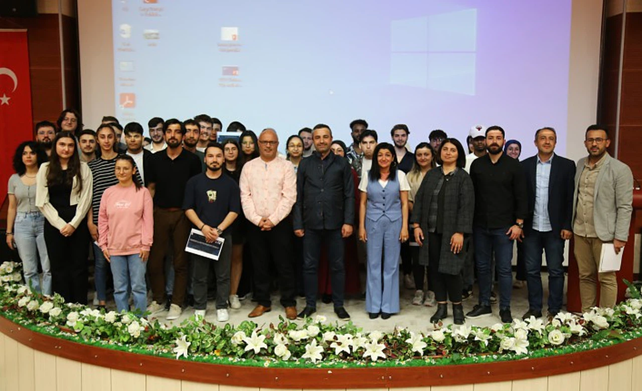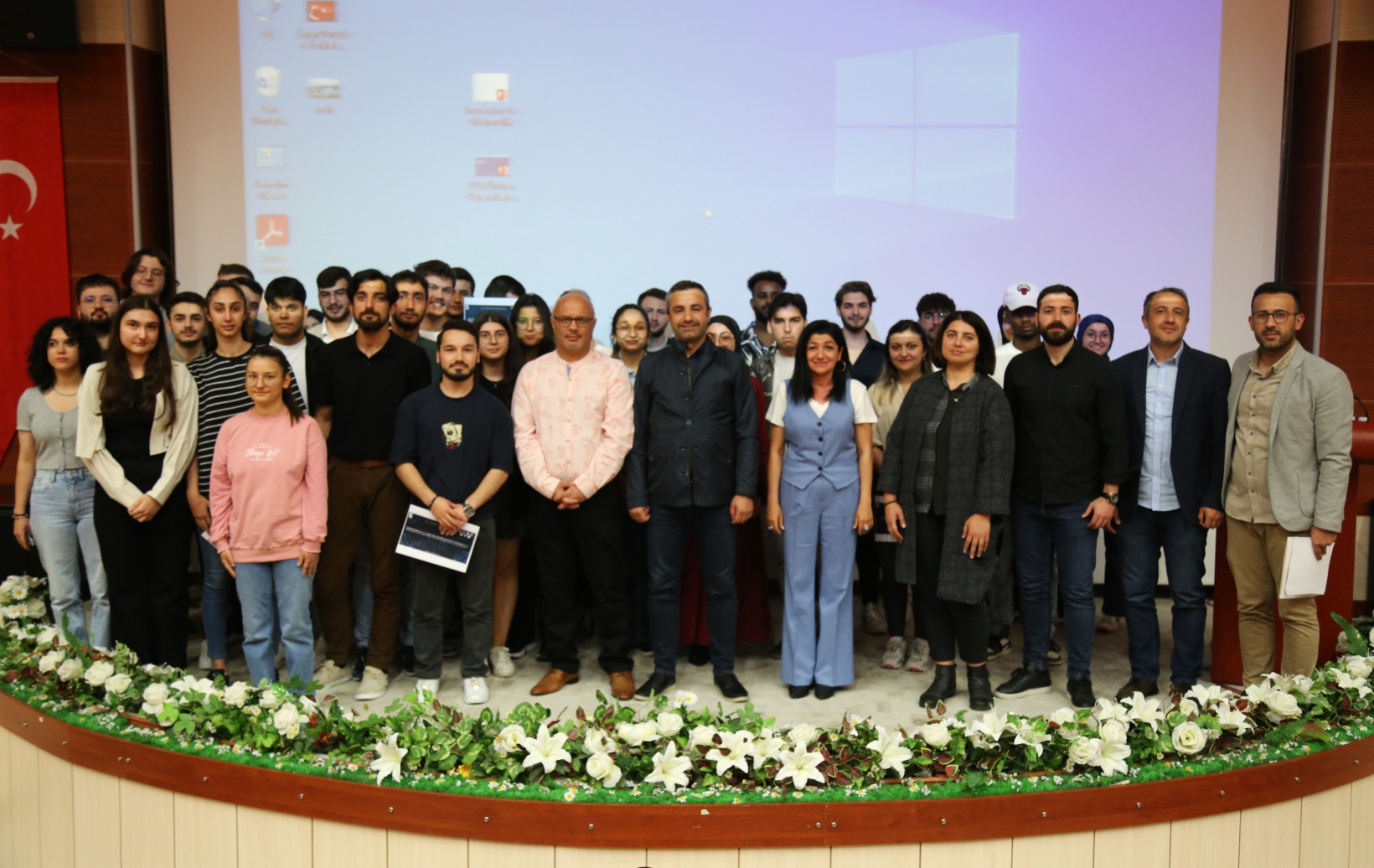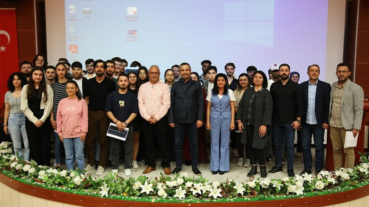Prof. Dr. Nafiz Maden’in konuşmasının ardından Karadeniz Teknik Üniversitesi Teknoloji Transfer Ofisi Merkezi Proje Uzmanı Eren Yılmaz tarafından “İnovasyon ve Girişimcilik Yolculuğuna Başlarken Atılması Gereken Adımlar” başlıklı bir sunum gerçekleştirildi.