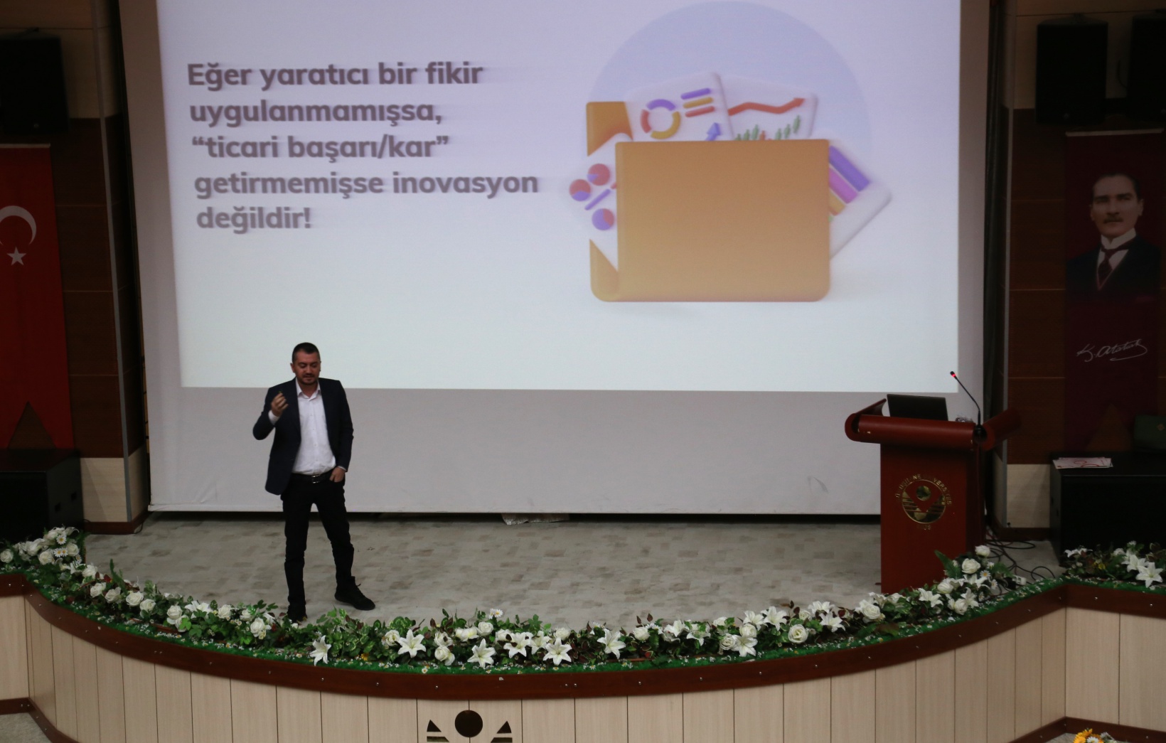 Proje Uzmanı Yılmaz sunumunda yaratıcı bir fikrin uygulanmamış olması, ticari başarı veya kar getirmemiş olmasının inovasyon olmadığını belirterek, “Ar-Ge, teknolojik inovasyonun ön koşuludur. Ar-Ge sonucu ortaya çıkan yenilikler girişimci bir bakış açısı ile ele alınıp ticarileştirildiğinde, ortaya inovasyon çıkar” dedi.