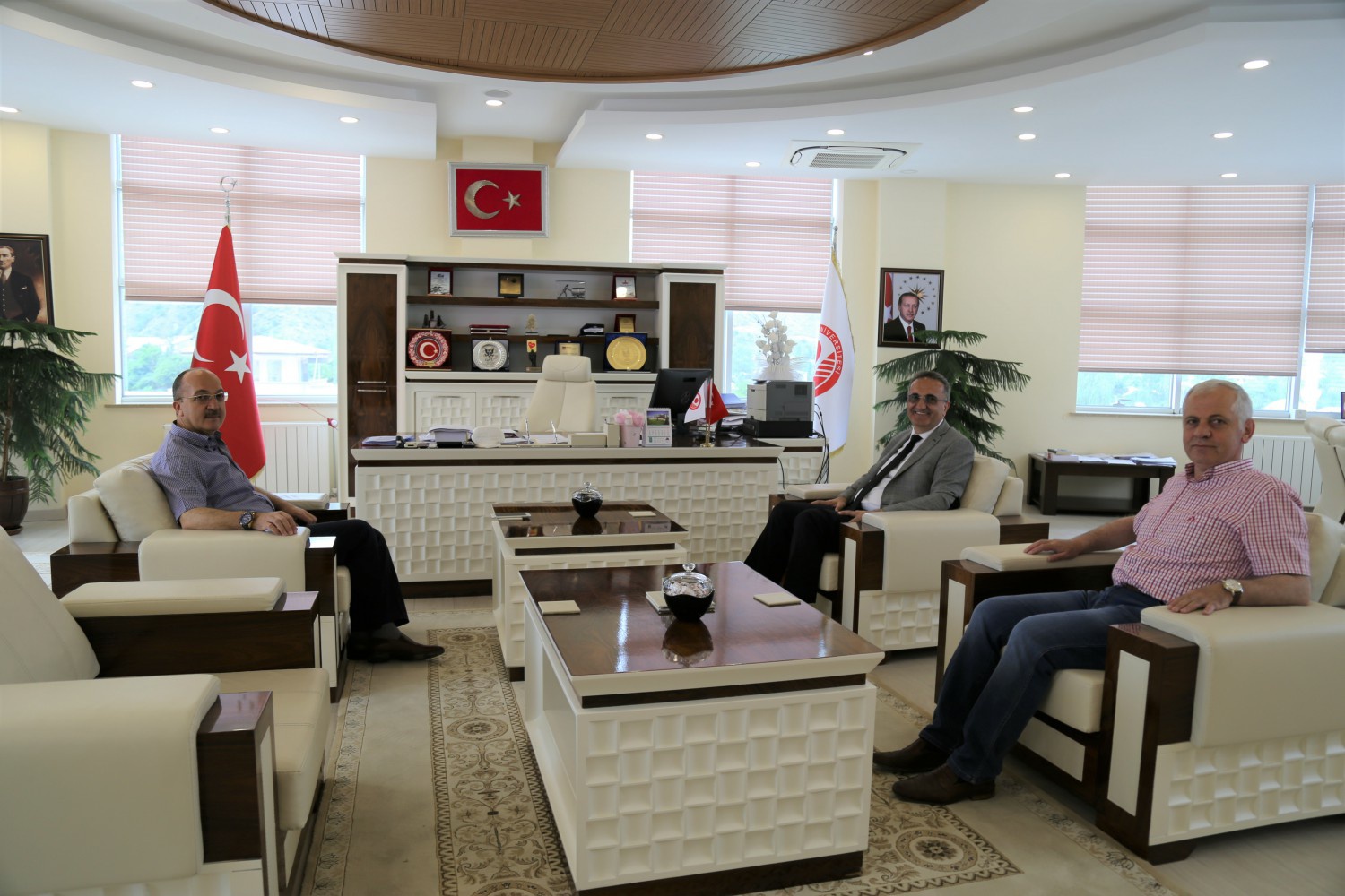 Rektörlük makamında gerçekleşen ziyarette Rektör Prof. Dr. Halil İbrahim Zeybek kendilerine yapılan bu iade-i ziyaretten memnuniyet duyduğunu dile getirdi.