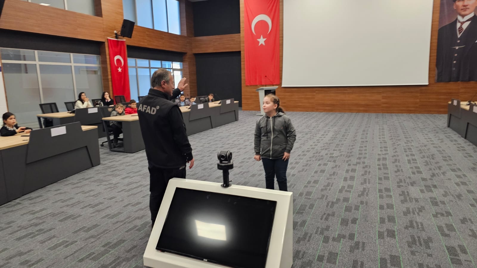 Öğrencilerin sorularını cevaplayan AFAD Eğitim Şube Müdürü Taşkın Okur, öğrencilere teşekkür etti.