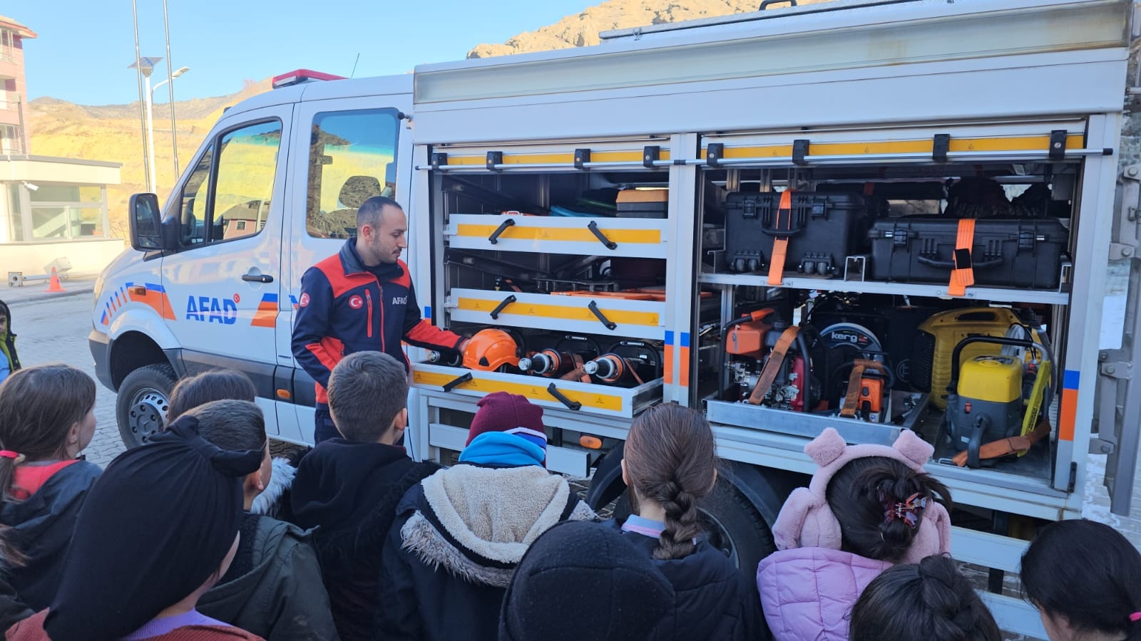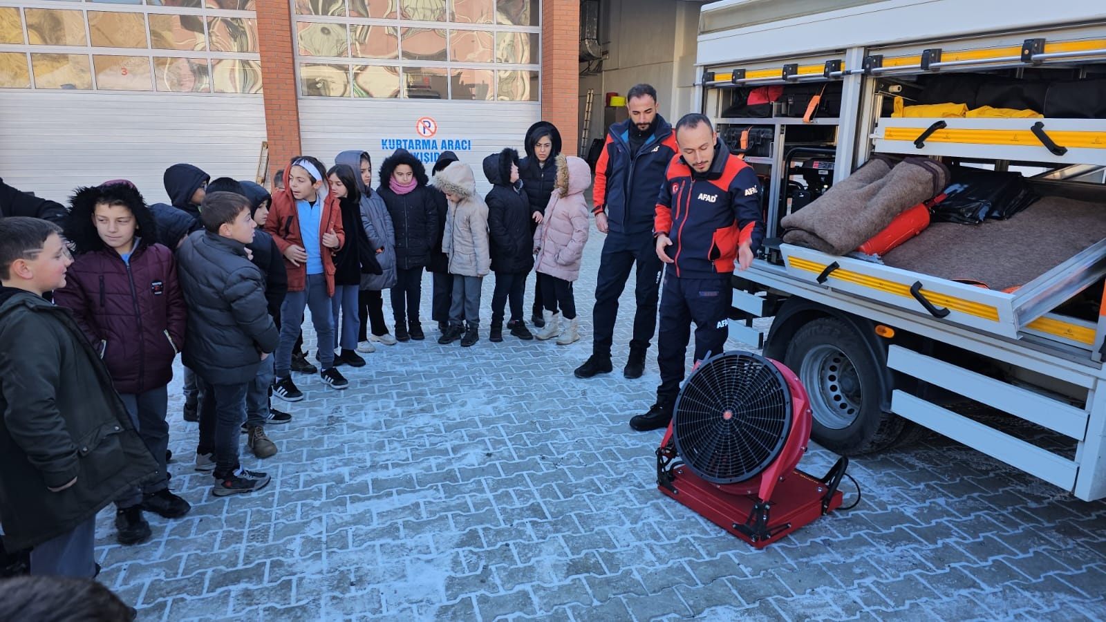 Görevliler öğrencilerin “6 Şubat depreminde görev aldınız mı?” sorusunun ardından depremde Adıyaman ilinde arama kurtarma çalışmalarına katıldıklarını ifade ederek orada nasıl çalıştıklarını anlattı. Soruların cevaplandırılmasının ardından öğrencilere doğal afetlerle ilgili olarak bilgilendirici broşürler dağıtıldı.