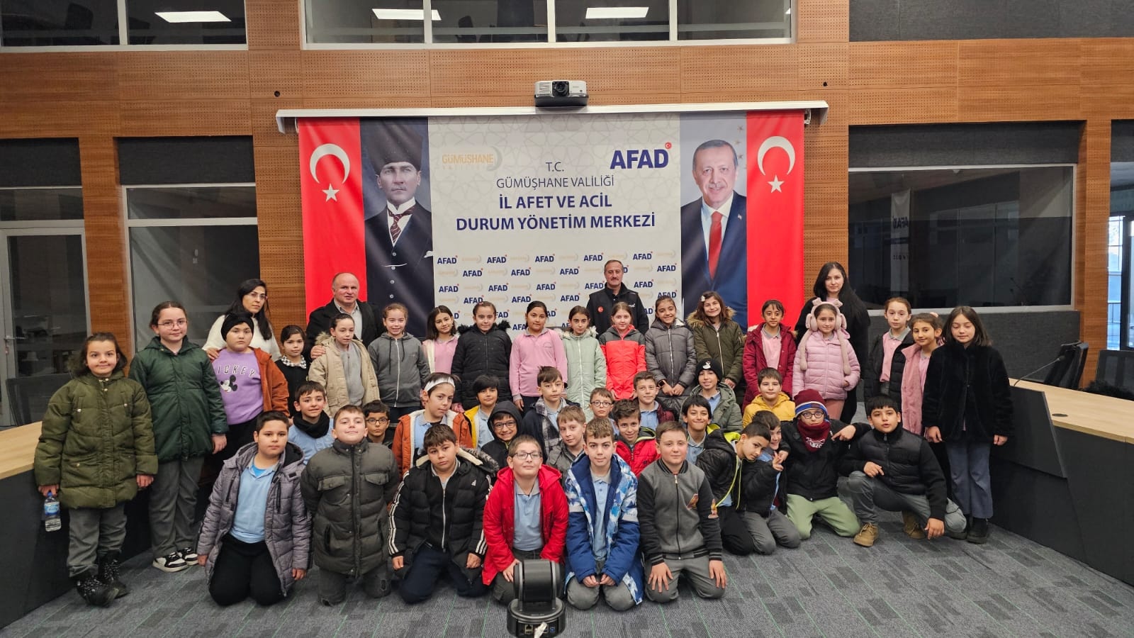 Gümüşhane Işıl Sema Doğan İlkokulu öğrencilere doğal afet bilincini kazanmak, doğal afetlerde nasıl davranılması gerek öğrenmek için Gümüşhane AFAD İl Müdürlüğü'ne gezi düzenledi.