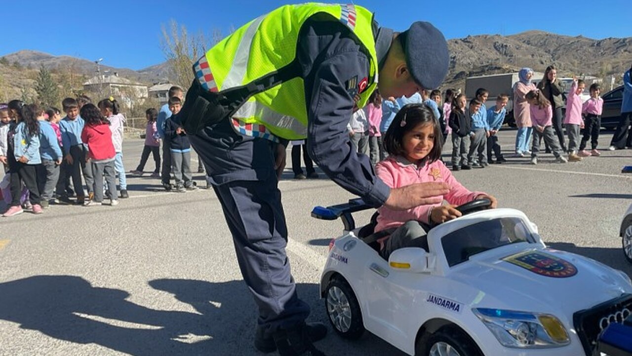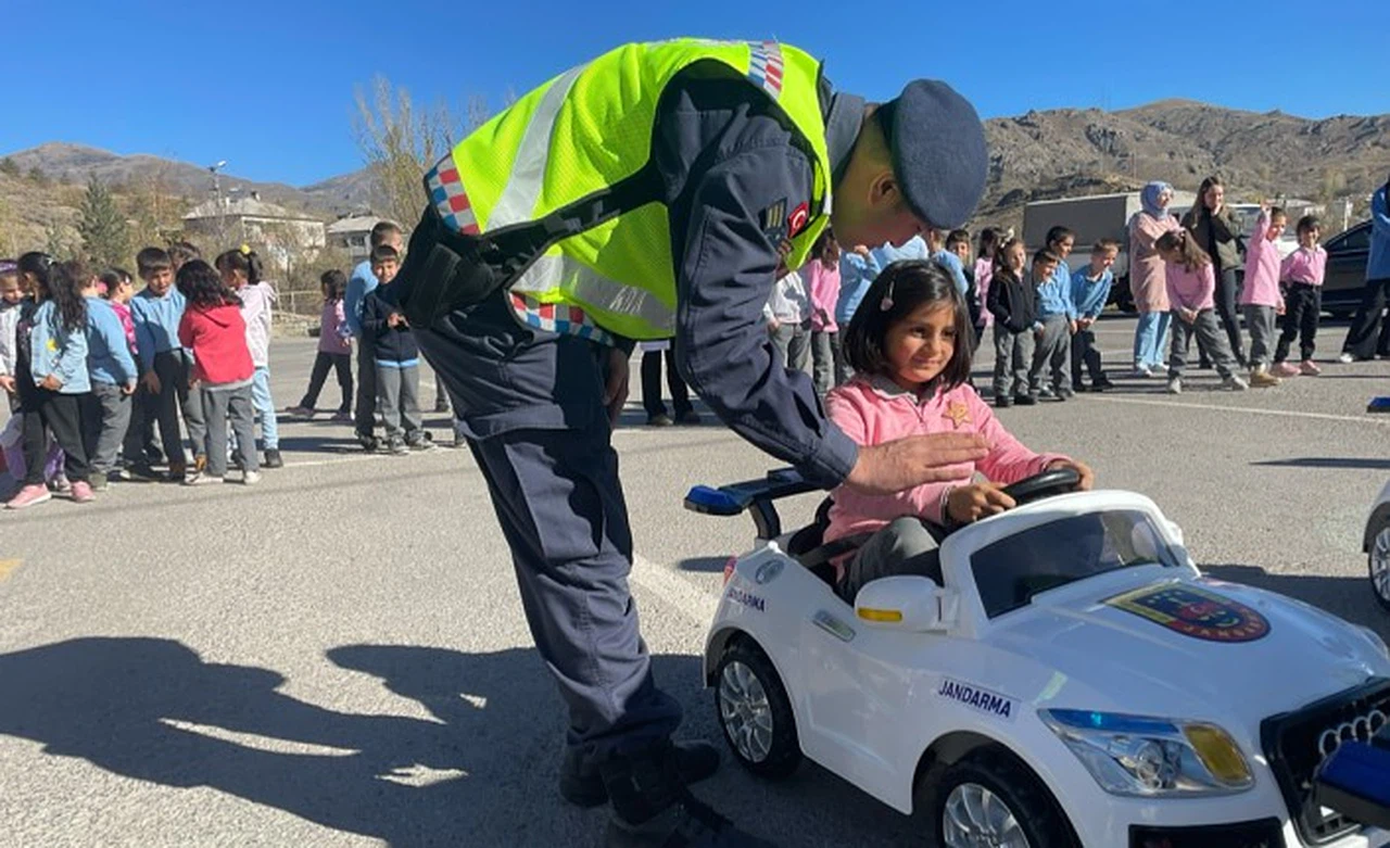 Uygulamalı trafik eğitimlerinin verildiği programlarda Trafik Jandarma Timlerince çocuklara çeşitli hediyeler dağıtılarak trafikte yaya ve yolcu güvenliğinin sağlanmasında farkındalık sağlandı.