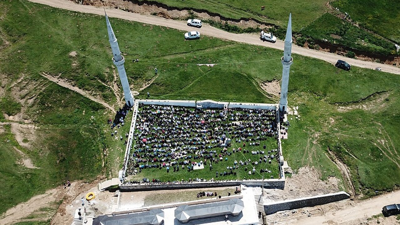 Kabe’den başka yer yüzünde çatısı olmayan tek ibadethane olan Gümüşhane’nin Kürtün ilçesi Özkürtün beldesine bağlı Kadırga Yaylasındaki açık hava camiinde 557 yıldır insanlar çimen üzerinde namaz kılıyor.