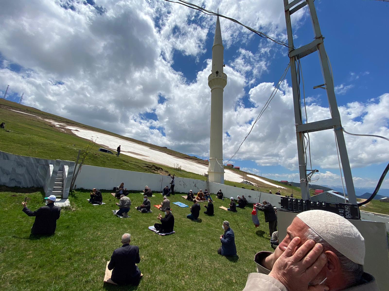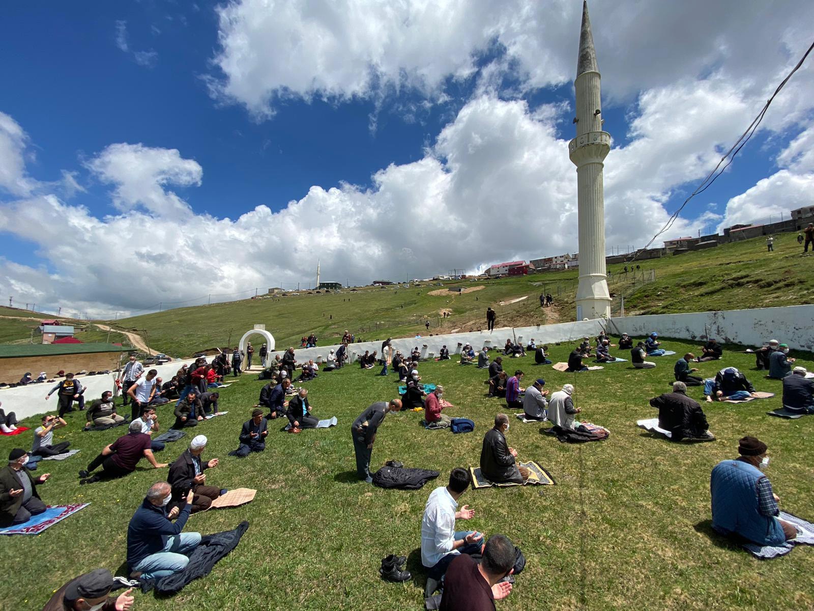 Koronavirüs salgını nedeniyle bu yıl Cuma namazları geçtiğimiz yılların aksine daha az sayıda katılımla ve sosyal mesafe kurallarına uygun olarak kılınırken, sayıları 100’ü geçen yöre halkı, yaylada tabanı doğal çimden oluşan etrafında sadece duvar olan ve 2 minaresi bulunan üzeri açık camiye girerek seccadelerini 1,5 metre aralıklı çime sererek bu yılın 2. Cuma namazını kılma fırsatını yakaladı.