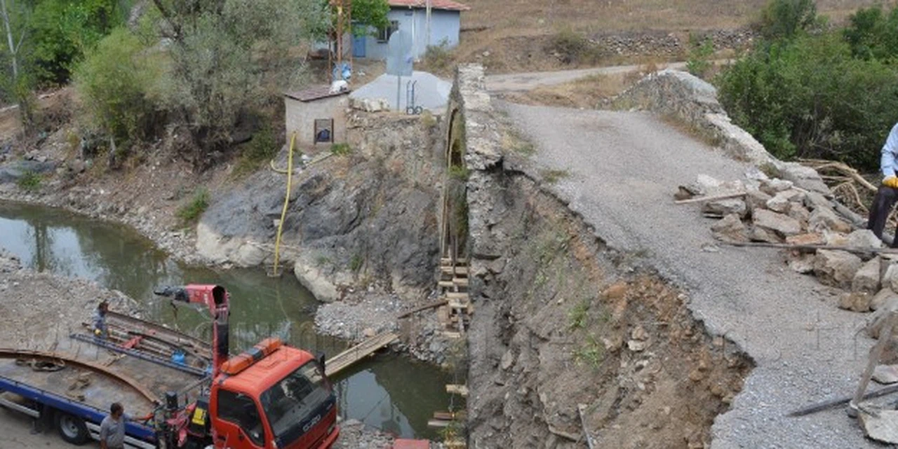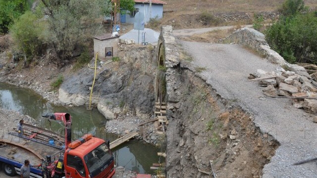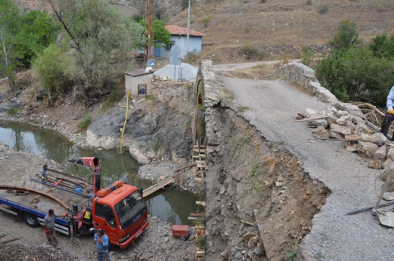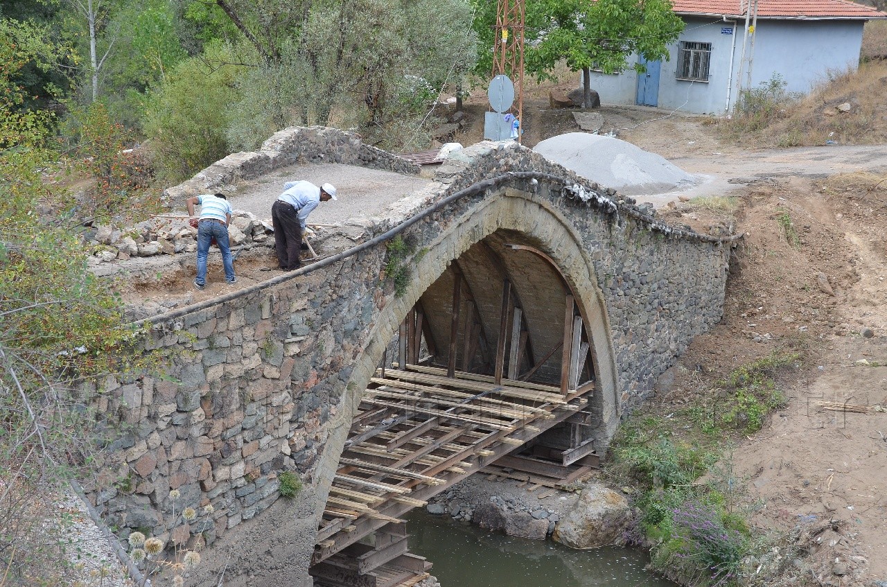 Karayolları 10. Bölge Müdürlüğü tarafından ihalesi yapılan tarihi İpek Yolunda ki köprünün yenileme ve restitüsyon işlerini yapacak yüklenici firma onarıma başladı.