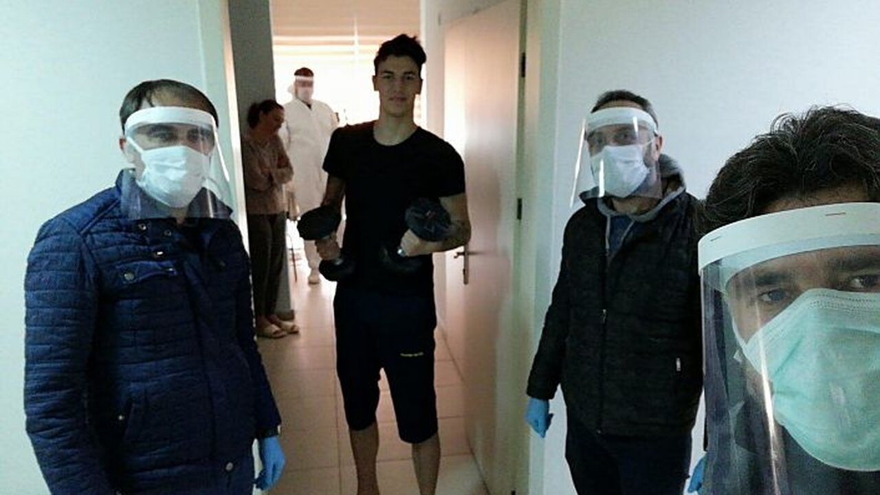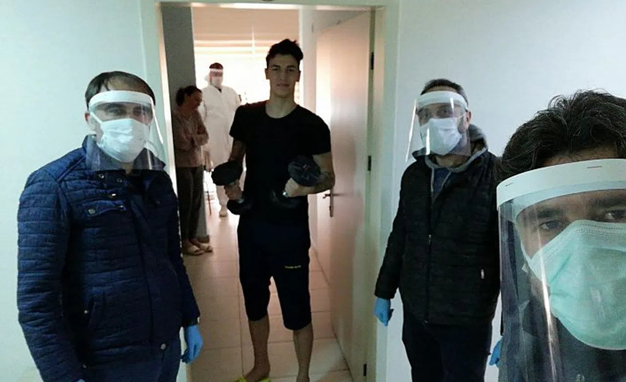 Belçika’dan Türkiye’ye getirilerek Gümüşhane’deki KYK yurdunda karantina altına alınan KVC Westerlo takımında kiralık olarak oynayan Fenerbahçe'li futbolcu Berke Özer’e formunu koruması için bisiklet, dambıl ve bar verildi.
