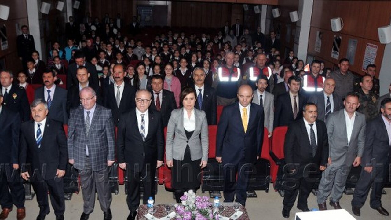 Salon girişindeki fuaye alanında hafta nedeniyle düzenlenen resim yarışmasındaki eserlerin sergisinin gezilmesi, saygı duruşu ve İstiklal Marşının okunmasıyla başlayan programda ilk olarak trafik güvenliği konulu sinevizyon gösterisi ile Başbakan Recep Tayyip Erdoğan’ın trafik güvenliği konusunda ki mesajları katılımcılara izlettirildi.