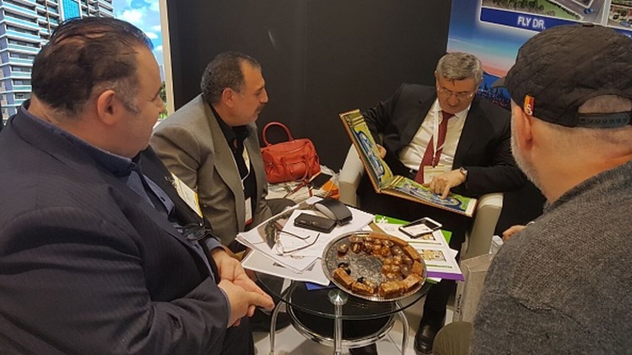 Katar'ın başkenti Doha'da devam eden Cityscape Gayrimenkul Fuarına katılan Uçarlar Yapı Ltd. Şti’nin standında Gümüşhane’nin pestil ve kömesi fuar katılımcılarına ikram ediliyor.