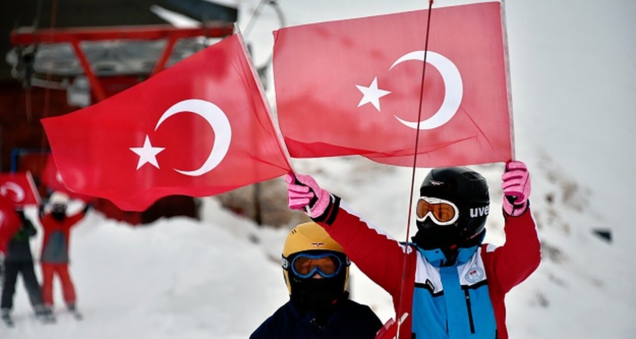 Gümüşhane’nin Torul ilçesine bağlı Zigana dağında bulunan Gümüşkayak merkezinde yarıyıl tatilinde kayak öğrenen gençler, zirveden Türk bayraklı ve meşaleli iniş yaptıktan sonra horon oynayarak kursu tamamladı.