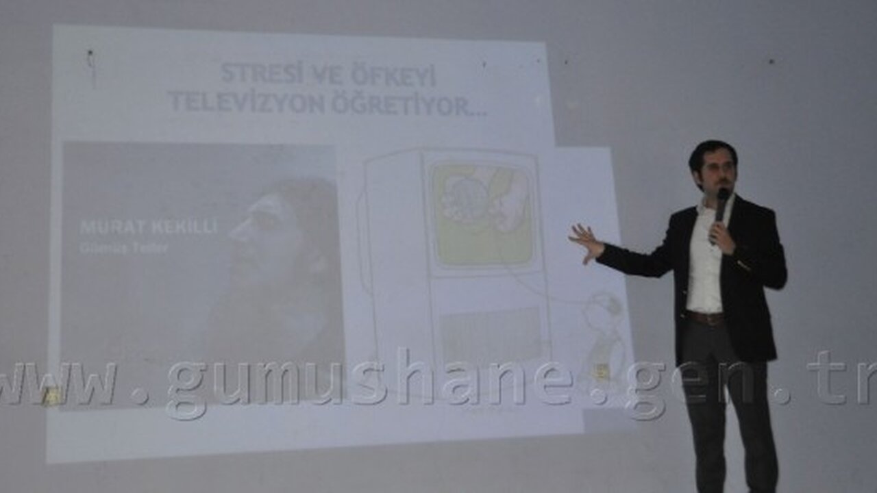 Okulun konferans salonunda düzenlenen semineri düzenleyen Öğr. Gör. Uz. M. Serhat Semercioğlu, “Günlük ortalama 5 saat televizyon izleme oranıyla Dünya 2.si olan ülkemizde özellikle şiddet, entrika, ihanet vb. olumsuz konuları temel alan dizi ve filmler insanlarımızın stres düzeyinin artmasına ve öfkelerini kontrol edememelerine sebep olmaktadır. Bu konuyla ilgili olarak yazıldığını düşündüğüm şarkıyı da üniversitemiz dâhil gerçekleştirdiğim birçok seminerde paylaşıp küçükte olsa insanları olumsuz yönde etkileyen dizilere bir tepki göstermiş oluyorum.” şeklinde konuştu.