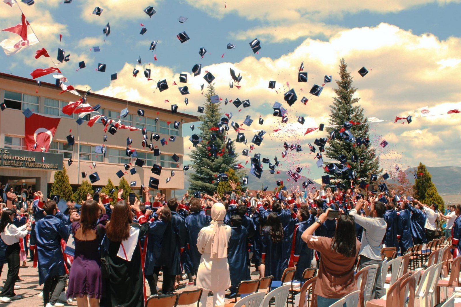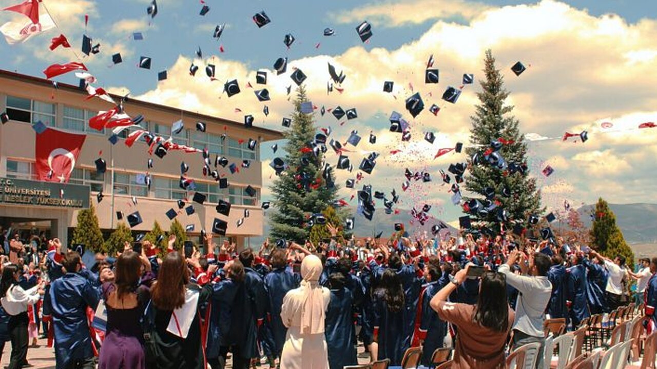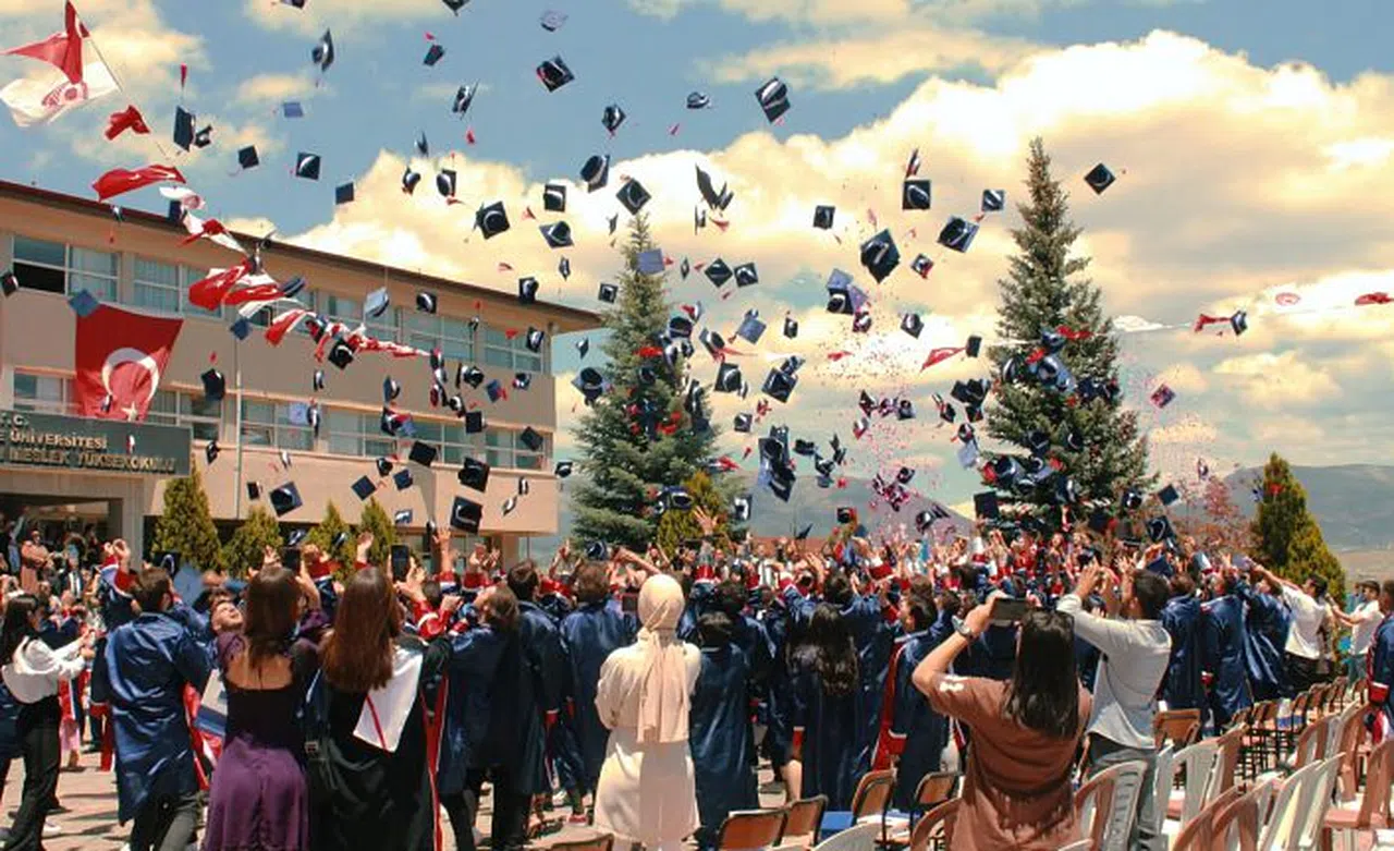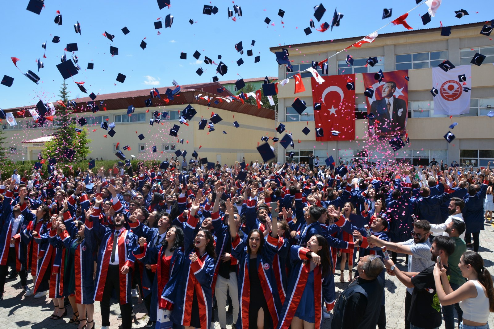 Mezun öğrencilerin yemin töreni, ardından kep atma ve hatıra fotoğrafı çekimiyle programın ilk aşaması tamamlandı.