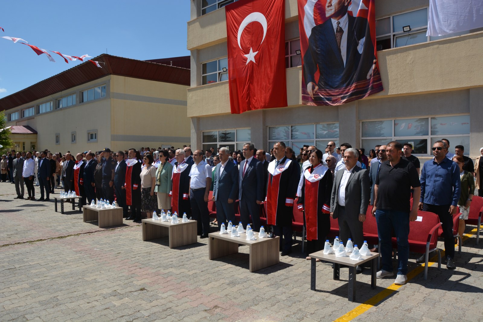Tören 2021-2022 Eğitim-Öğretim yılında mezun olan öğrencilerin tören alanına girmesi ile başladı. Saygı duruşunda bulunulması ve İstiklal Marşının okunmasının ardından okul birincisi Veterinerlik Bölümü öğrencisi Ertuğrul Öztürk’ün konuşması ve yaş kütüğüne birincilik plaketini çakmasıyla devam etti.