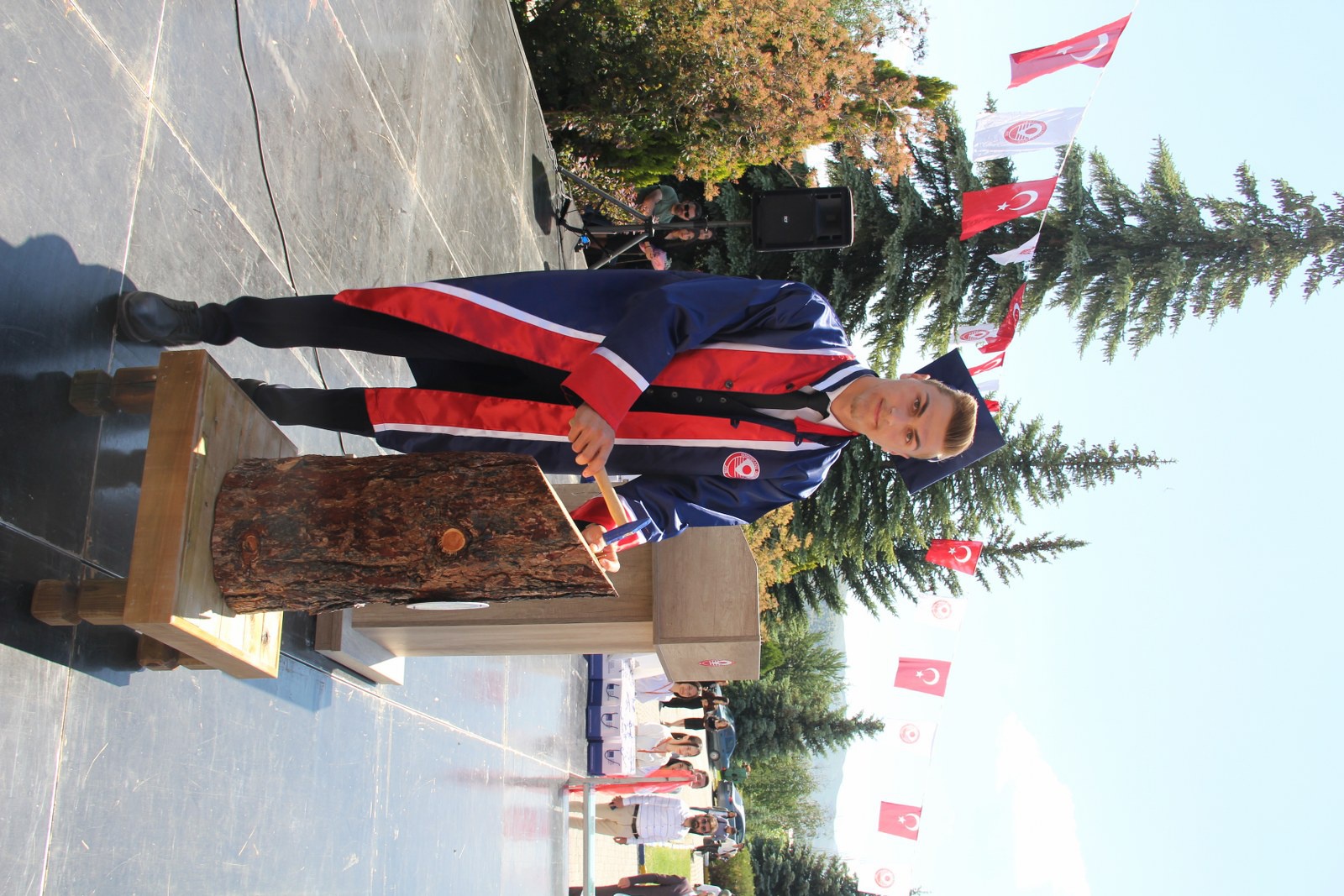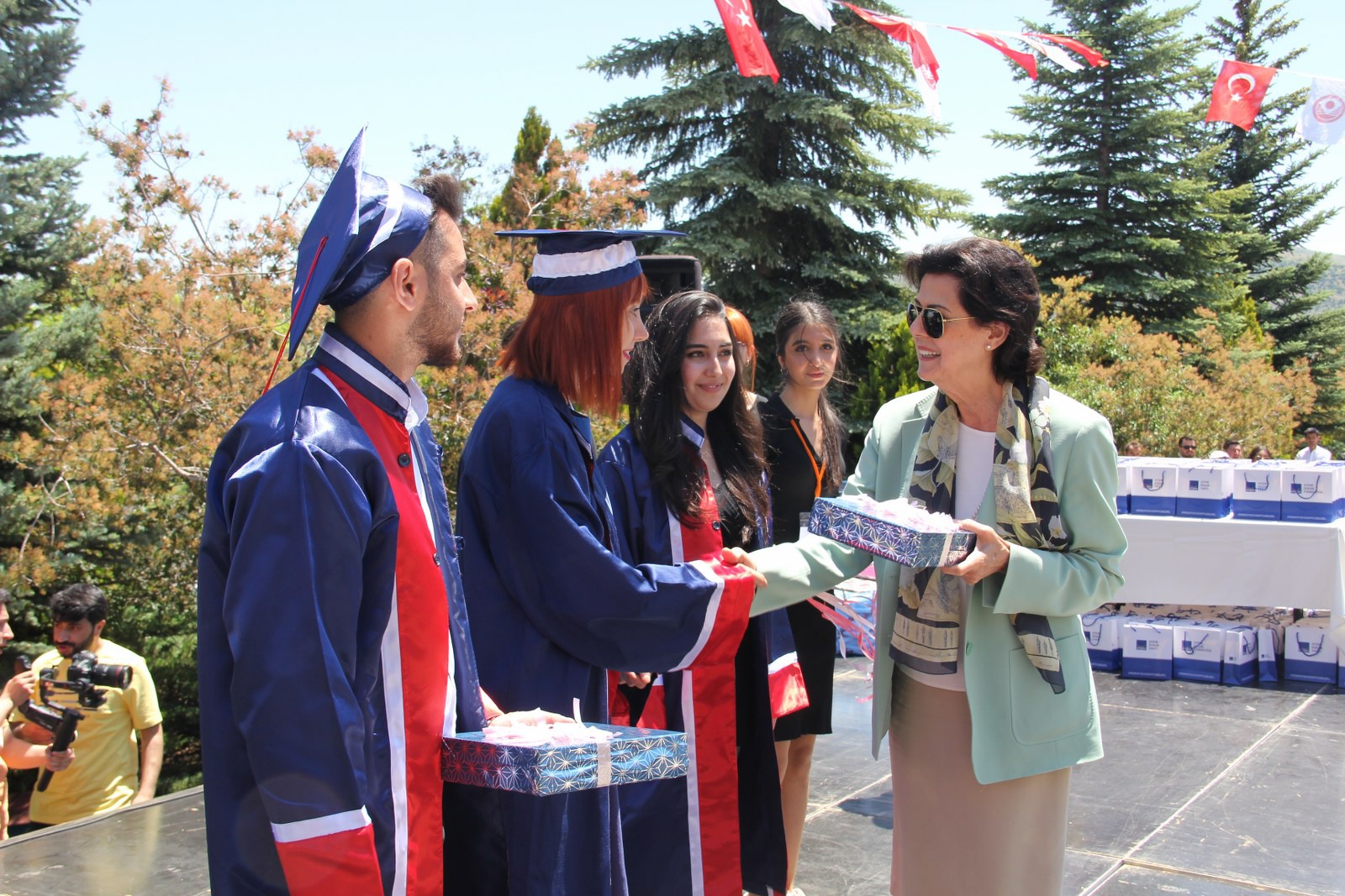 Öztürk konuşmasında, “iki yıl önce büyük hayallerle çıktığımız bu zorlu ve bir o kadar da keyifli yolculuğu bugün burada sonlandırmanın buruk bir sevincini taşıyoruz. Çünkü alıştığımız, sevdiğimiz, değerli anıları paylaştığımız okulumuzdan ve arkadaşlarımızdan ayrılıyoruz. Fakat hepimizin de bildiği gibi her veda; yeni, güzel ve umutlu başlangıçlara açılan bir kapıdır. Okulumuzu böylesine güzel bir dereceyle bitirmek benim tek başıma elde ettiğim bir başarı değildir. Bu başarıda ailemin, hocalarımın ve arkadaşlarımın da payları bulunmaktadır. Başta her türlü maddi ve manevi katkılarıyla yoluma ışık tutan ve bana güç veren aileme bütün içtenliğimle buradan teşekkürlerimi sunuyorum. Bizlere alanlarında her türlü bilgi ve deneyimi aktararak bizi başarıya taşıyan, bize anlayışla ve sevgiyle yaklaşan saygıdeğer hocalarıma bütün kalbimle şahsım ve arkadaşlarım adına teşekkür ediyorum” dedi.