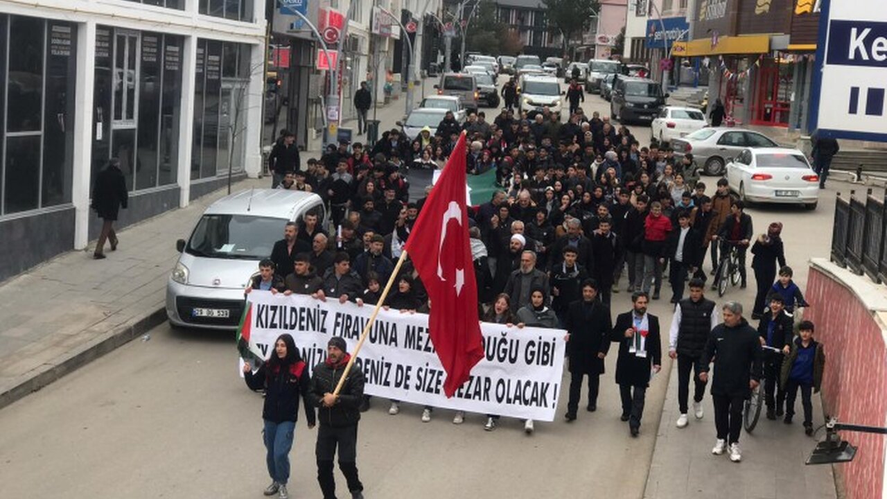 İsrail’in Filistin topraklarında aylardır sürdürdüğü soykırımı kınamak için TÜGVA Lise ekibi tarafından organize edilen yürüyüş Mavi Kafe önünden başlayıp Kelkit meydana kadar devam etti.