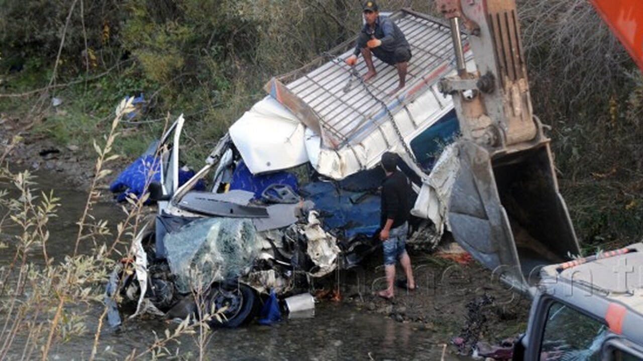 Kaza sonrası minibüs dereye yuvarlanırken, dereye yuvarlanan minibüsü üzerine de taş yüklü kamyon devrildi. Kazada 10 kişi hayatını kaybederken, 3 kişi ise yaralandı.