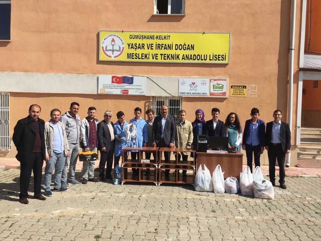 Kelkit Yaşar ve İrfani Doğan Mesleki ve Teknik Anadolu Lisesi ‘Meslek Lisesi Öğrencileri Ailelerimizle Buluşuyor Projesi’ kapsamında yardıma muhtaç ailelerde buluşarak onların dertlerine ortak oluyor, ailelerin Mobilya, Bilgisayar, Elektrik ve Su Tesisatı sorunlarını çözüyor ve ayrıca birçok ihtiyaçlı aileye de Kelkitli esnaflardan temin ettikleri gıdalarla yardımlarda bulunuyorlar.