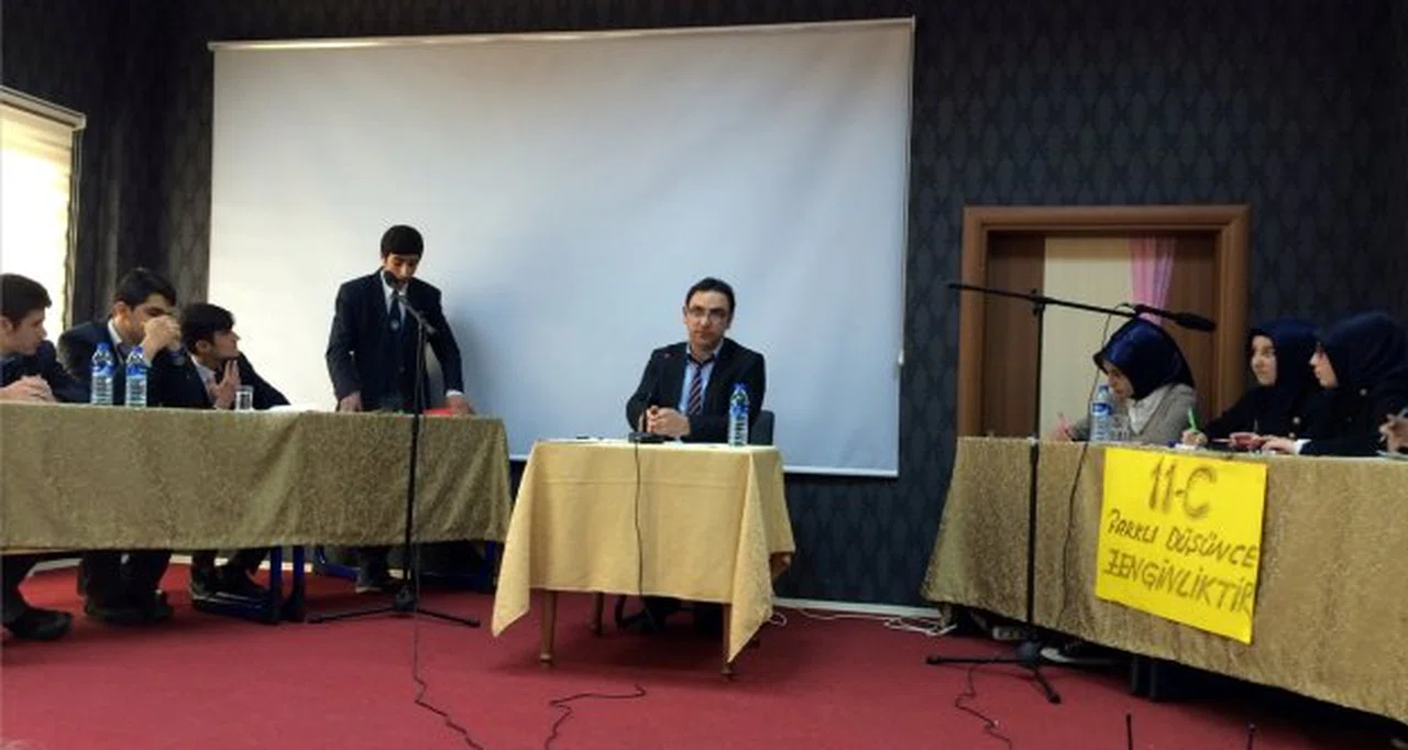 Münazarada takımlar kendi savundukları düşünceleri örneklerle anlatarak karşı tarafa üstünlük sağlama çabasına girerken, Muhammet Kara’nın başkanlığını yaptığı jüri heyeti 11/D sınıfı münazara ekibi 81,15, 11/C sınıfı münazara ekibi 83,45 puan alarak yarışmayı birincilikle bitirdi.