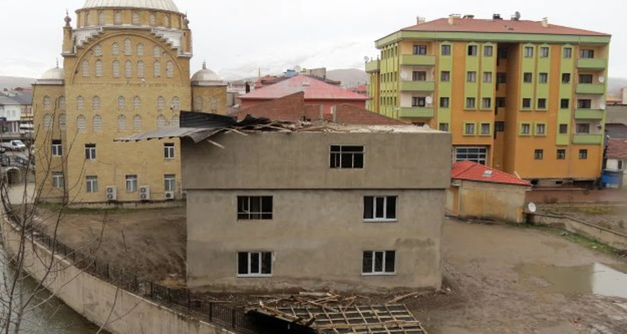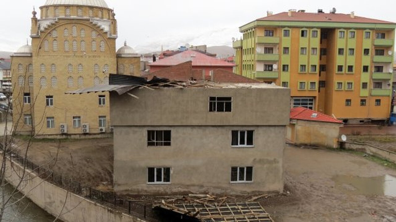 Saatteki hızı 50 kilometrenin üzerine çıkan rüzgar Küçük Cami Mahallesinde bulunan Eski Kız Kuran Kursunun çatısını yola uçurdu.