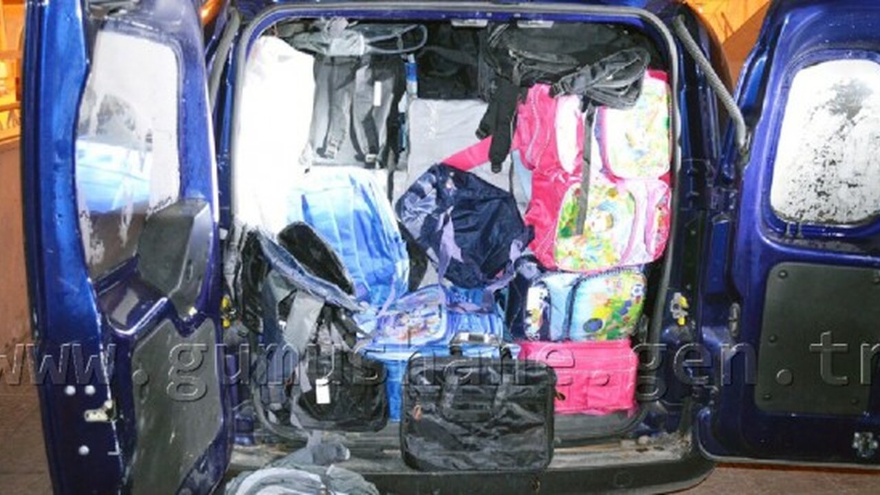 Uyanıklar okul çantaları arasında gizledikleri 12 bin 500 paket kaçak sigara ile yakalandı.