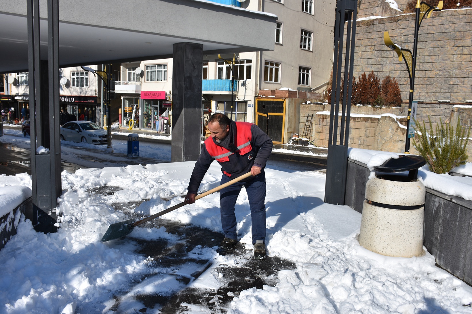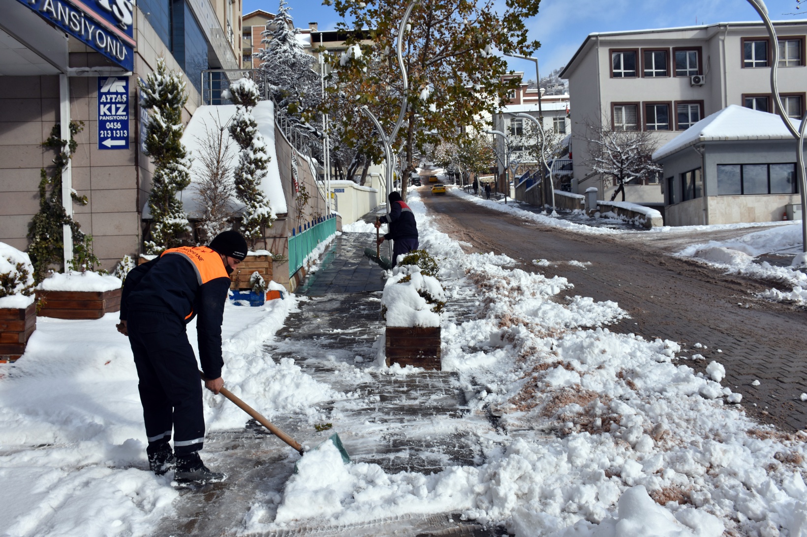 Kar yağışının etkili olduğu saatlerden itibaren karla mücadeleye başlayan ekipler çalışmalar kapsamında bir yandan ana arterler ve mahallelerde kar temizlik çalışması yaparken diğer yandan buzlanma tehlikesine karşı tuzlama çalışması gerçekleştirdi.