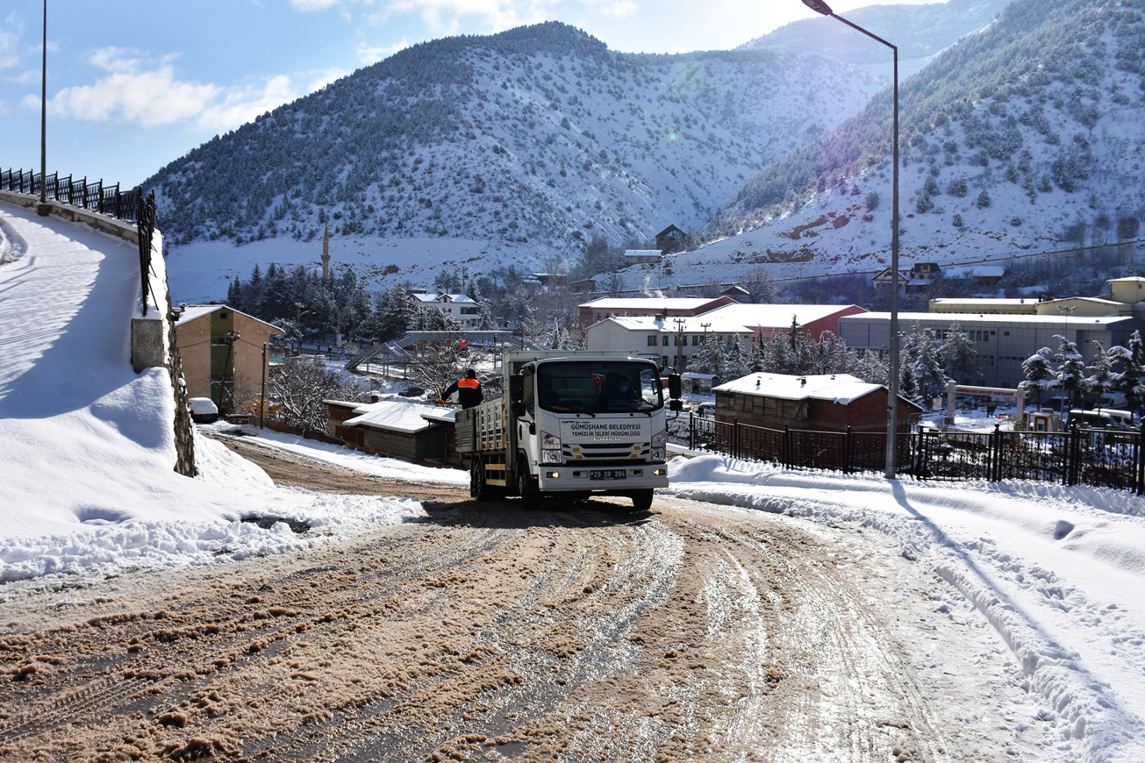 Yağışla birlikte başladığı karla mücadele çalışmalarını aralıksız sürdüren Gümüşhane Belediyesi karla mücadele ekipleri şehrin çok sayıda noktasında aynı anda çalışma gerçekleştirdi.