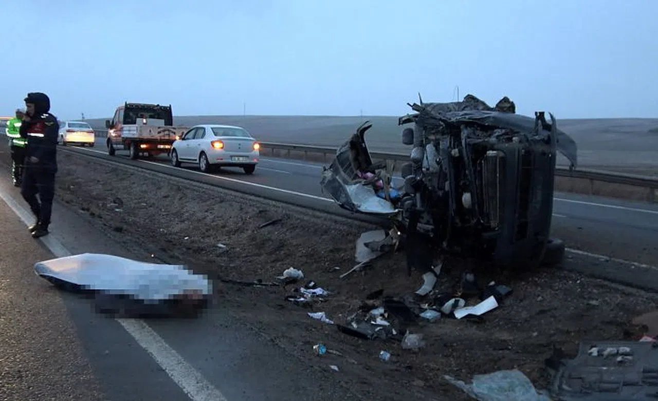 Hurda yığınına dönen ve tavan kısmı da kopan hafif ticari aracın sürücüsü olay yerinde hayatını kaybederken, yanında yolcu olarak bulunan Halil B. (34) ağır yaralandı.