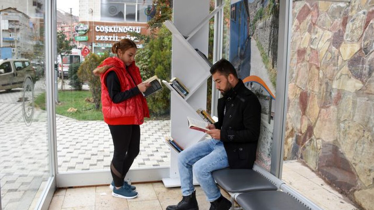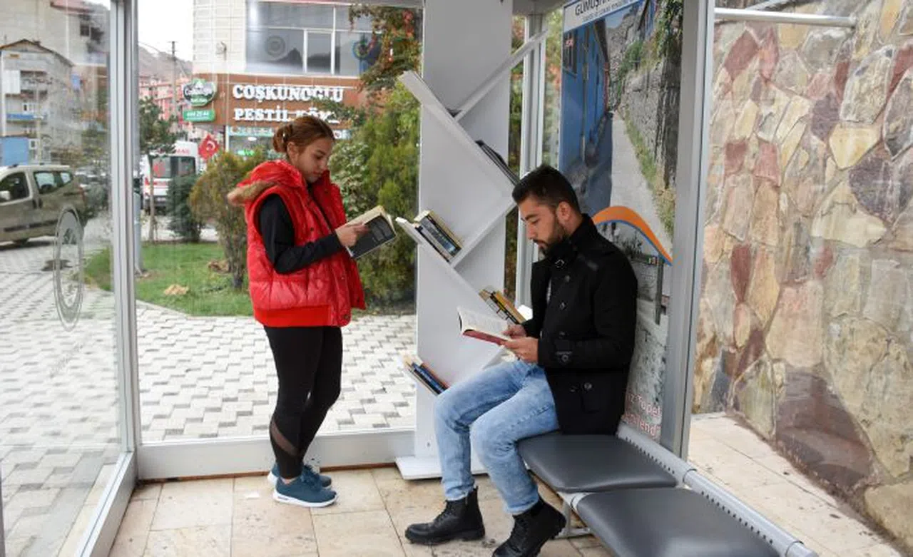 Gümüşhane Üniversitesi, Gümüşhane Meslek Yüksekokulu Grafik Tasarım birinci sınıf öğrencisi Mustafa Ethem Altuntaş, sosyal sorumluluk projesi kapsamında akıllı klimalı duraklara vatandaşların otobüs ve dolmuş beklerken kaliteli zaman geçirmeleri için kitap bıraktı.