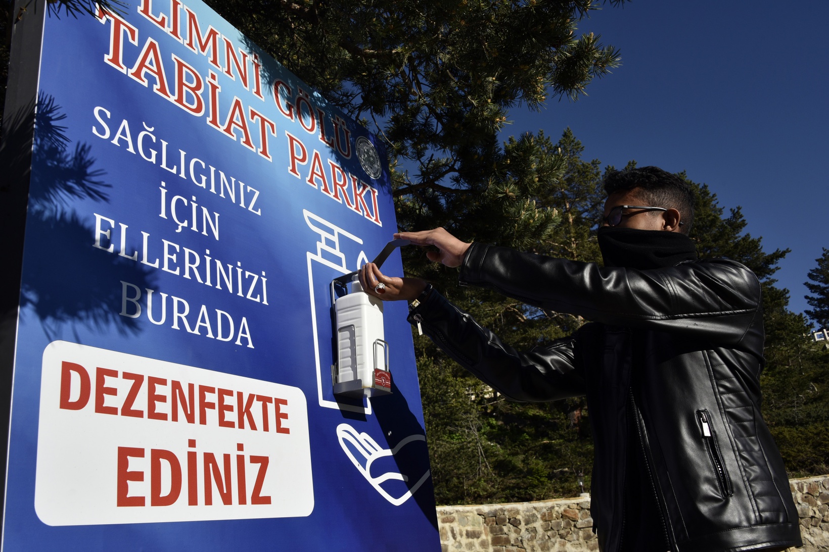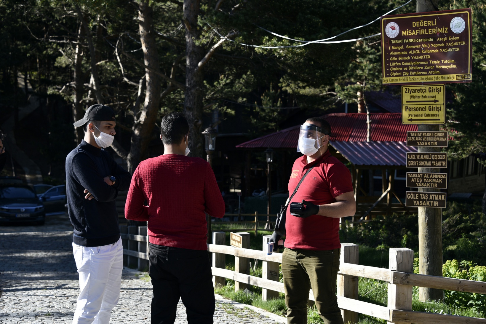 Gümüşhane’nin Torul ilçesine bağlı Zigana köyü sınırlarında yer alan ve son dönemde Doğu Karadeniz bölgesinin dikkat çeken turizm merkezlerinden birisi olan Limni Gölü Tabiat Parkına girişte ziyaretçilerin ateşi ölçülüyor, dezenfektan kullandırılıyor, tüm personel hijyen kurallarını birebir uyguluyor.