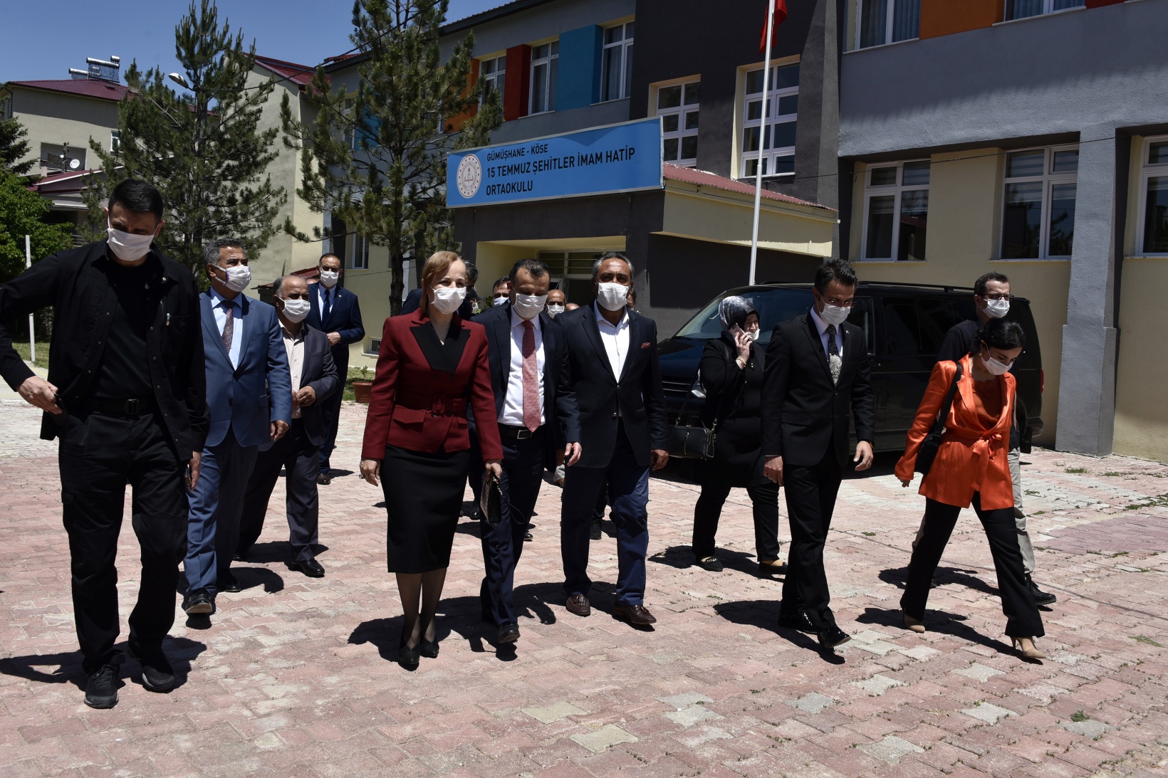 Köse Kaymakamı Ömer Faruk Canpolat, Gümüşhane Belediye Başkanı Ercan Çimen, Köse Belediye Başkanı Turgay Kesler’ın eşlik ettiği açılış programı kapsamında daha sonra İlçe Nüfus Müdürlüğü binasının açılışını gerçekleştiren Vali Taşbilek, eski halk eğitimi merkezi binasının yenilenmesi sonucu müstakil binasına kavuşan 15 Temmuz Şehitler İmam Hatip Ortaokulunun açılışını gerçekleştirerek sınıfları ve diğer tesisleri gezdi.