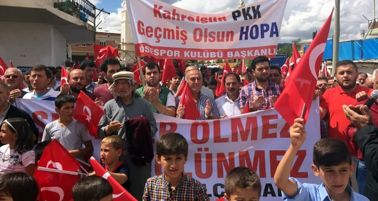 ‘Hepimiz Mehmediz Ülkemize Yeteriz’ sloganları ile Cuma namazı çıkışında pazar yerinde toplanan yaklaşık bin kişilik grup önce şehitler ve Artvin’in Hopa ilçesinde meydana gelen sel felaketinde hayatını kaybedenler için dua etti.