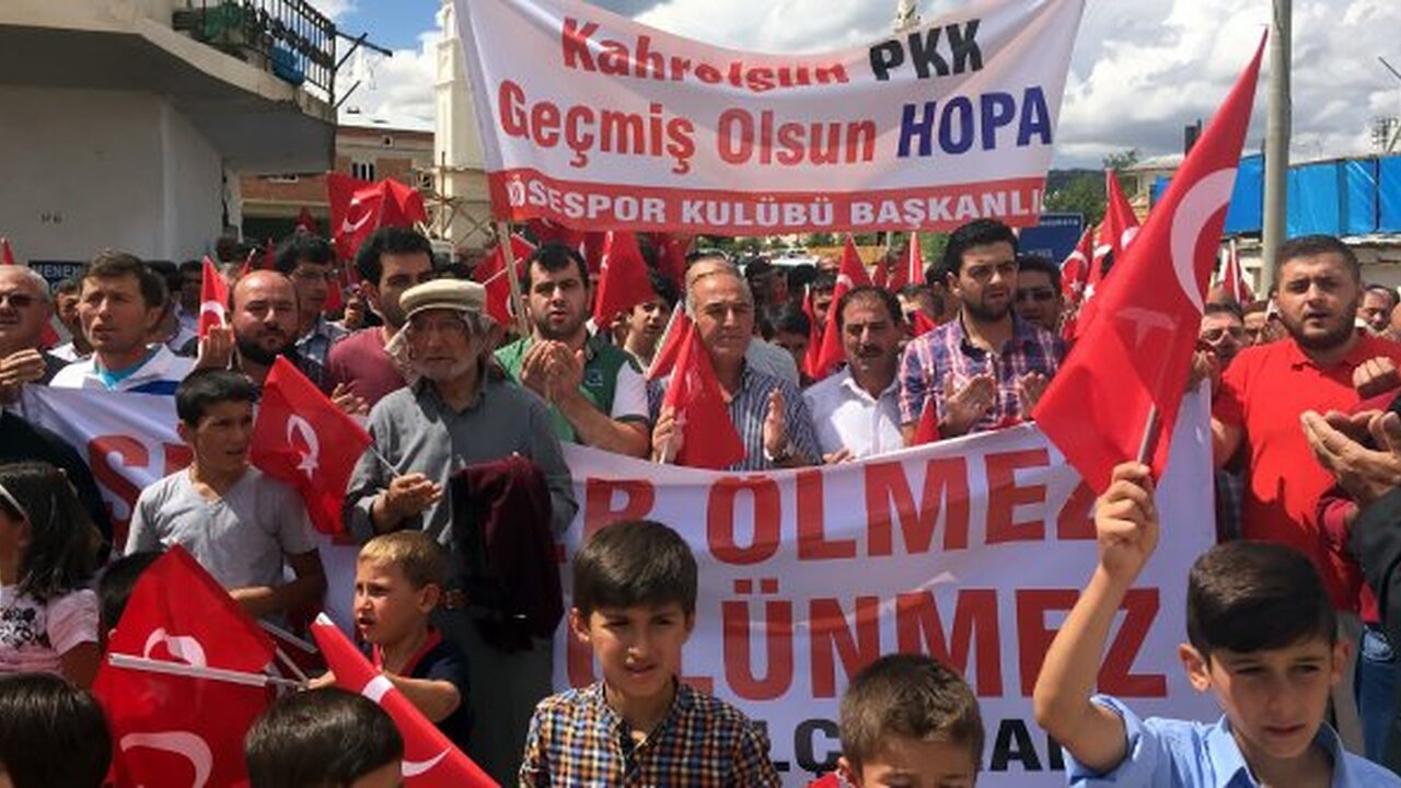 Doğan’ın açıklamasının ardından teröre lanet okuyan sloganlar atan grup, ellerindeki Türk bayraklarını sallayarak alandan olaysız şekilde ayrıldı.