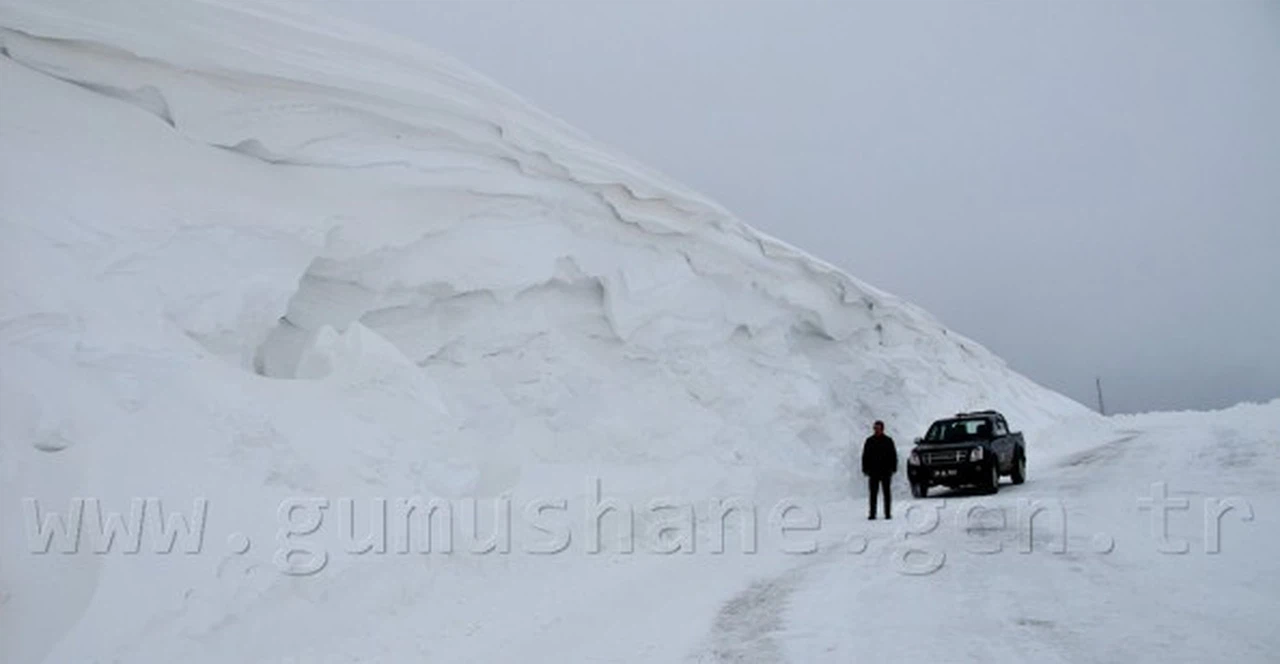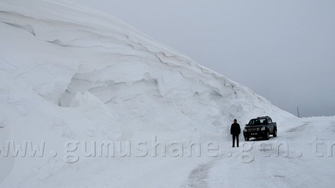 Gümüşhane-Yağmurdere karayolunun 2 bin 280 metre rakımlı Kostan Dağı geçidinde yer yer yüksekliği 7 metreyi bulan kar kütleleri sürücüleri hem korkutuyor, hem de güzel görüntülerin oluşmasına neden oluyor.