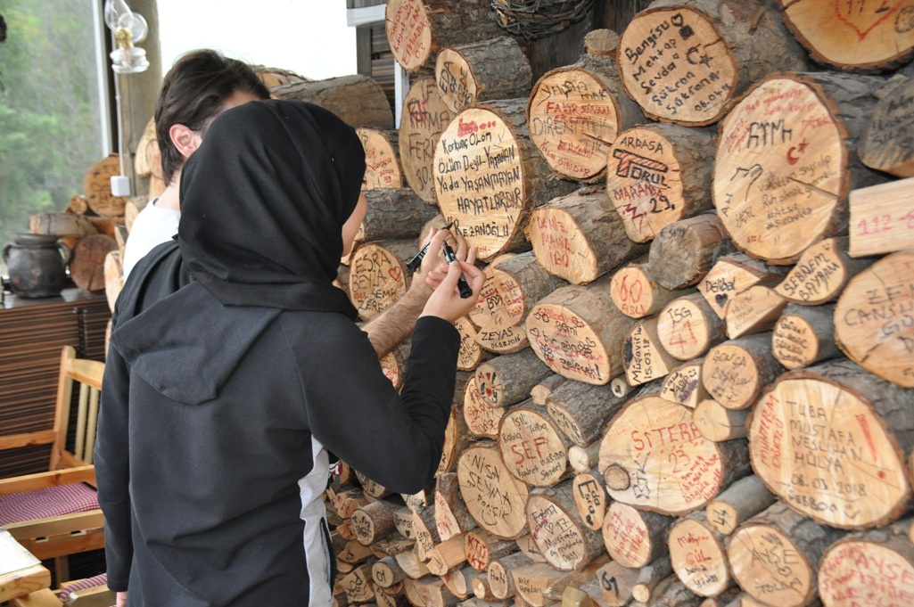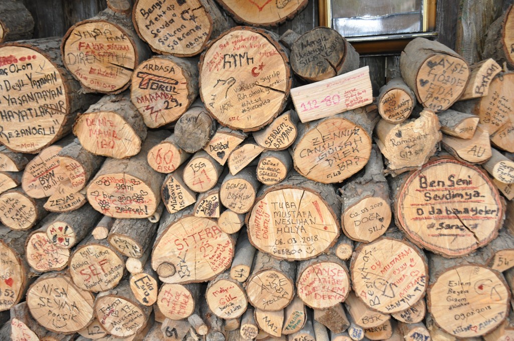 Ev içerisindeki sobalık odunları aksesuar olarak düşündüklerini ifade eden Saraç, şunları kaydetti: “Hem sobada yakmak ve yenilemek gibi düşünmüştüm ama müşterilerimiz tarafından hatıra defterine dönüştürüldü. Bu bizi mutlu eden bir olay oldu. Müşterilerimizin burada hatıralarını bırakmaları daha sonra geldikleri zaman bu benim kütüğüm, yeri değişmiş, kütüğüm nerde gibi şeylerle de zaman zaman karşılaşıyoruz. Bunları yakıp yenilerini koyacağız. Sosyal medyadan dolayı yazma alışkanlığımız oluştu. Masaların üzeri, kütükler, ekranlar hep yazıyla doldu.