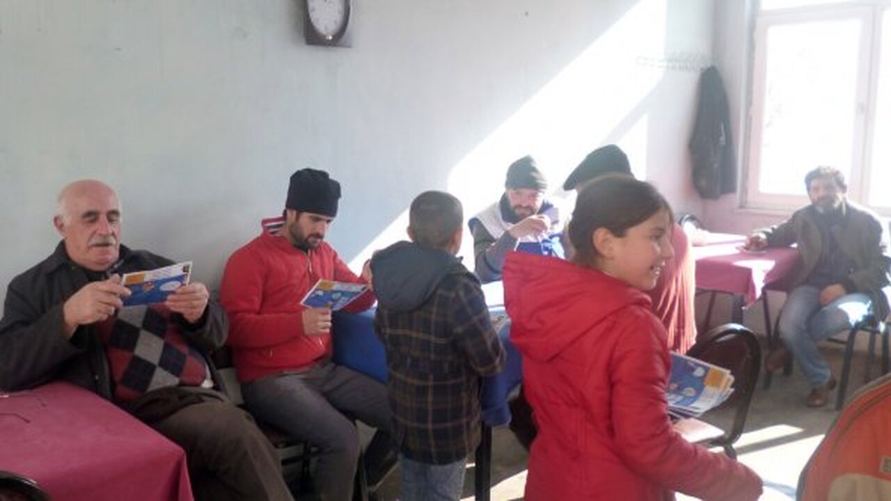 Öğrenciler daha sonra Kale Köyünde bulunan insanların yoğun olarak bulunduğu, bakkal kahvehane ve fırın gibi işyerlerini giderek burada bulunan büyüklerine enerji tasarrufu hakkında bilgi verdi.