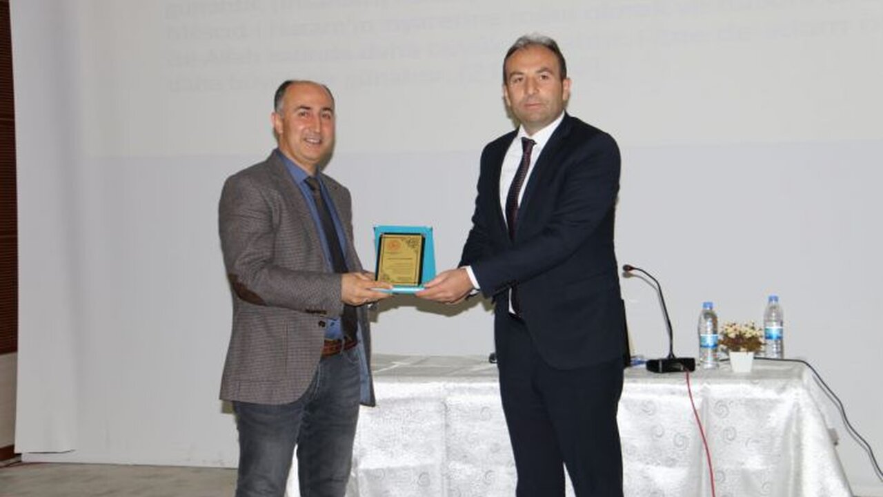Programın sonunda Gümüşhane Gençlik ve Spor İl Müdürü Mücahit Atalay konuşmacı Prof. Dr. Halil Aldemir’e teşekkür ederek plaket verdi.