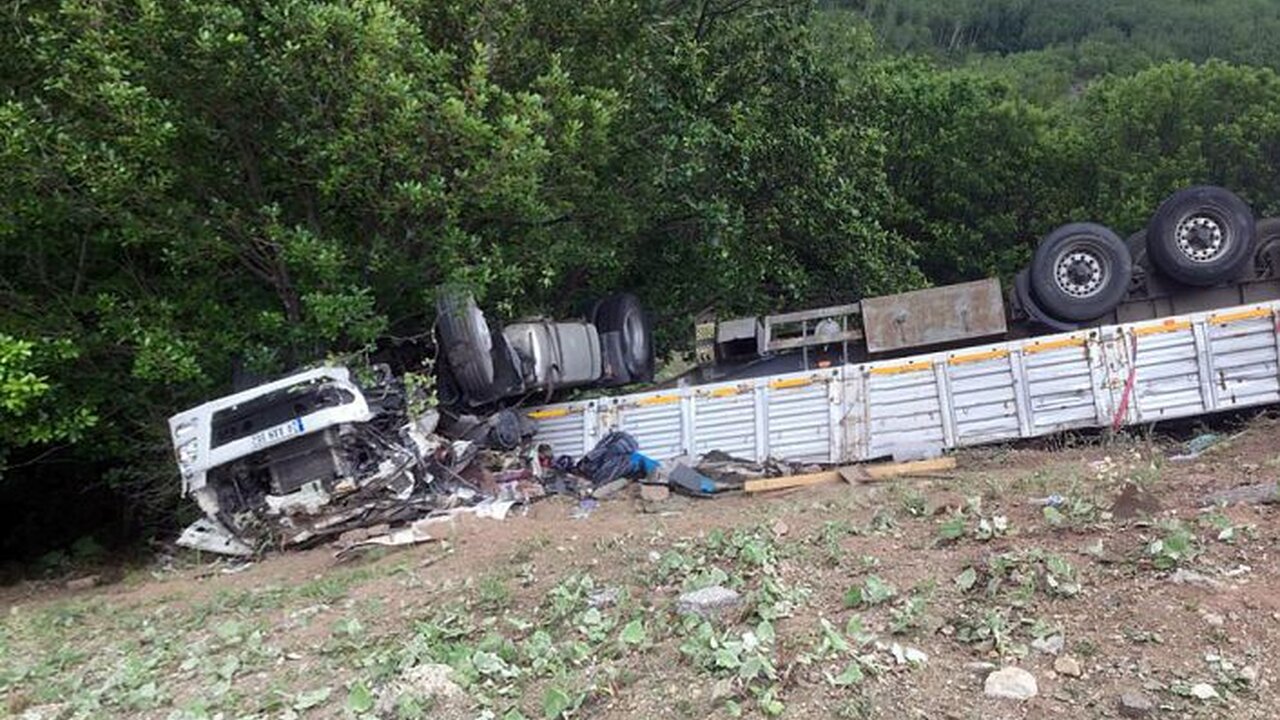 Kurbanlık taşıyan tır devrildi: 1 ölü 2